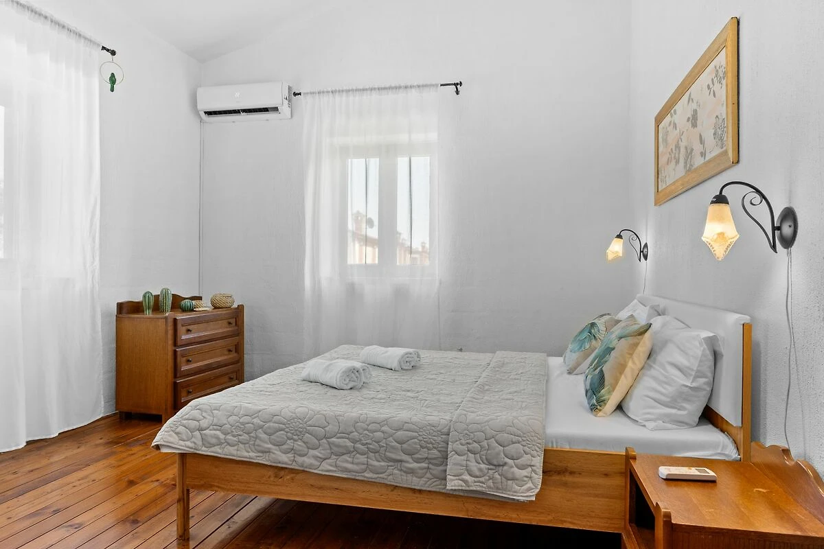 Die Villa bietet Platz für bis zu acht Gäste und verfügt über vier Schlafzimmer mit jeweils einem Doppelbett und Klimaanlage für einen erholsamen Aufenthalt.