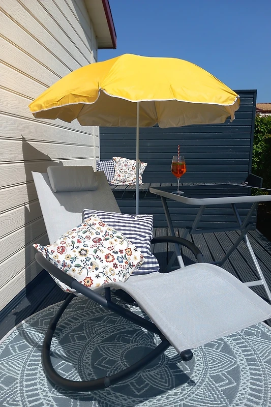Genießt entspannte Stunden auf der windgeschhützen und beheizbaren Terrasse, wo ihr den Tag am großen Gasgrill ausklingen lassen könnt.