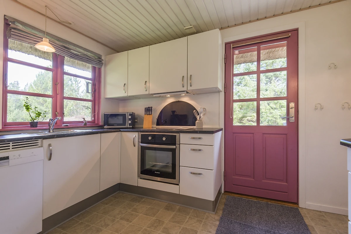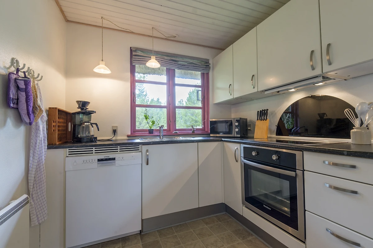 Im Inneren erwartet Sie ein großzügiger Wohnbereich mit Holzdetails und viel Tageslicht. Die Küche ist voll ausgestattet: Hier finden Sie eine Küchenzeile, Geschirrspüler, Mikrowelle, Wasserkocher und Kaffeemaschine – alles, was Sie für die Zubereitung köstlicher Mahlzeiten benötigen. Für Unterhaltung sorgen TV und kostenloses WLAN. Die Klimaanlage sorgt auch an warmen Tagen für angenehme Temperaturen.
