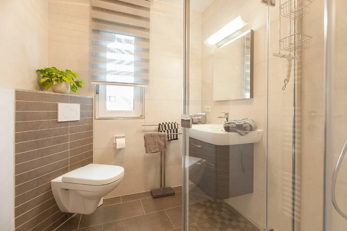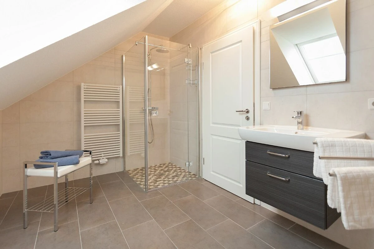 BAD // 2 Tageslicht-Badezimmer mit Dusche, WC und Waschtisch, eins davon zusätzlich mit Sauna und Badewanne, 2 Tageslicht-Badezimmer im OG mit Dusche, WC und Waschtisch ++