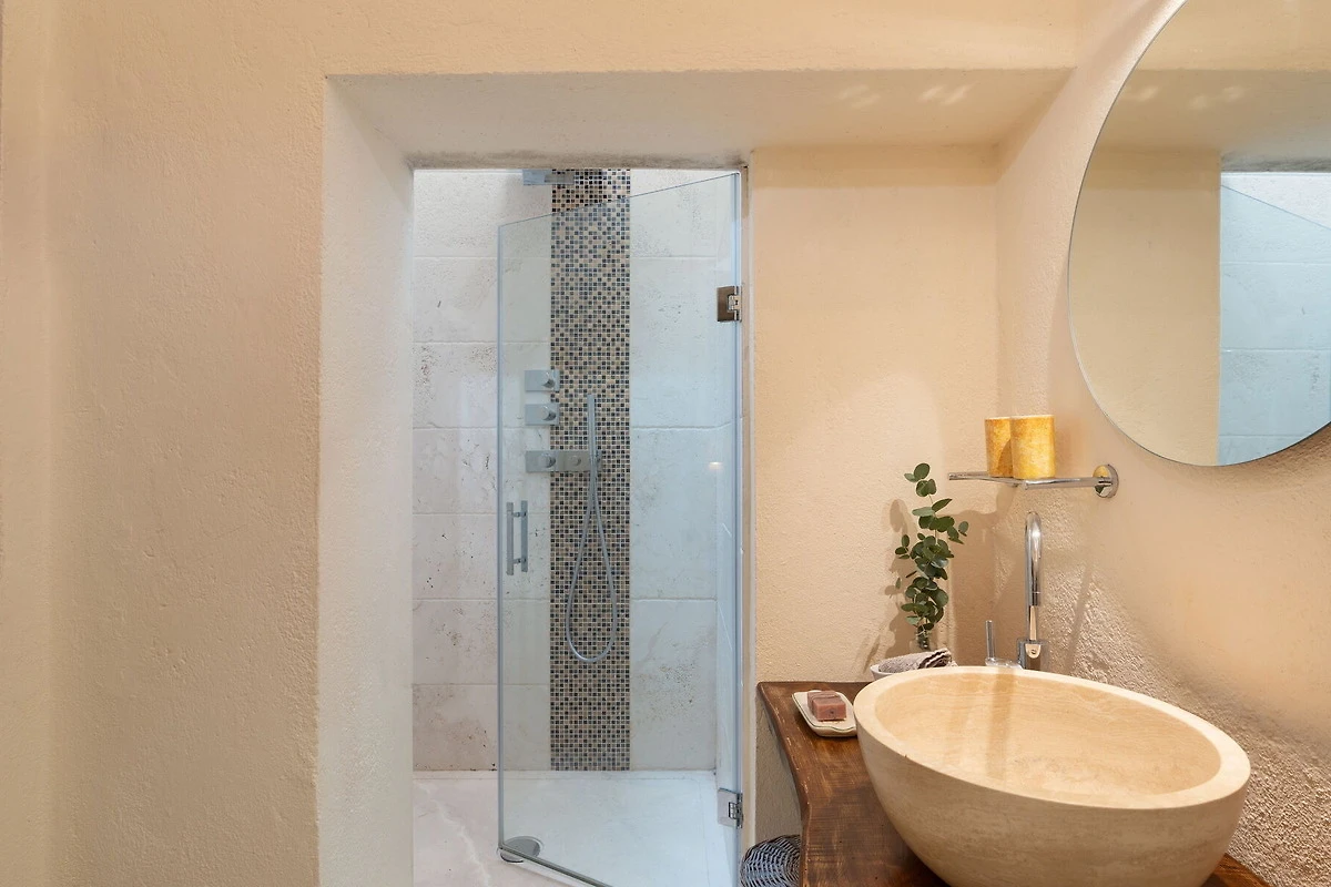 Die Villa verfügt über sechs Schlafzimmer, jedes mit eigenem Bad. Die Zimmer sind geräumig und hell, mit eleganten und bequemen Möbeln ausgestattet. Die Betten sind mit hochwertigen Matratzen ausgestattet, um einen erholsamen Schlaf zu gewährleisten. Die Innenräume der Schlafzimmer zeichnen sich durch warme Farben, edle Stoffe und sorgfältig ausgewählte Details aus, die eine Atmosphäre von Luxus und Raffinesse schaffen.