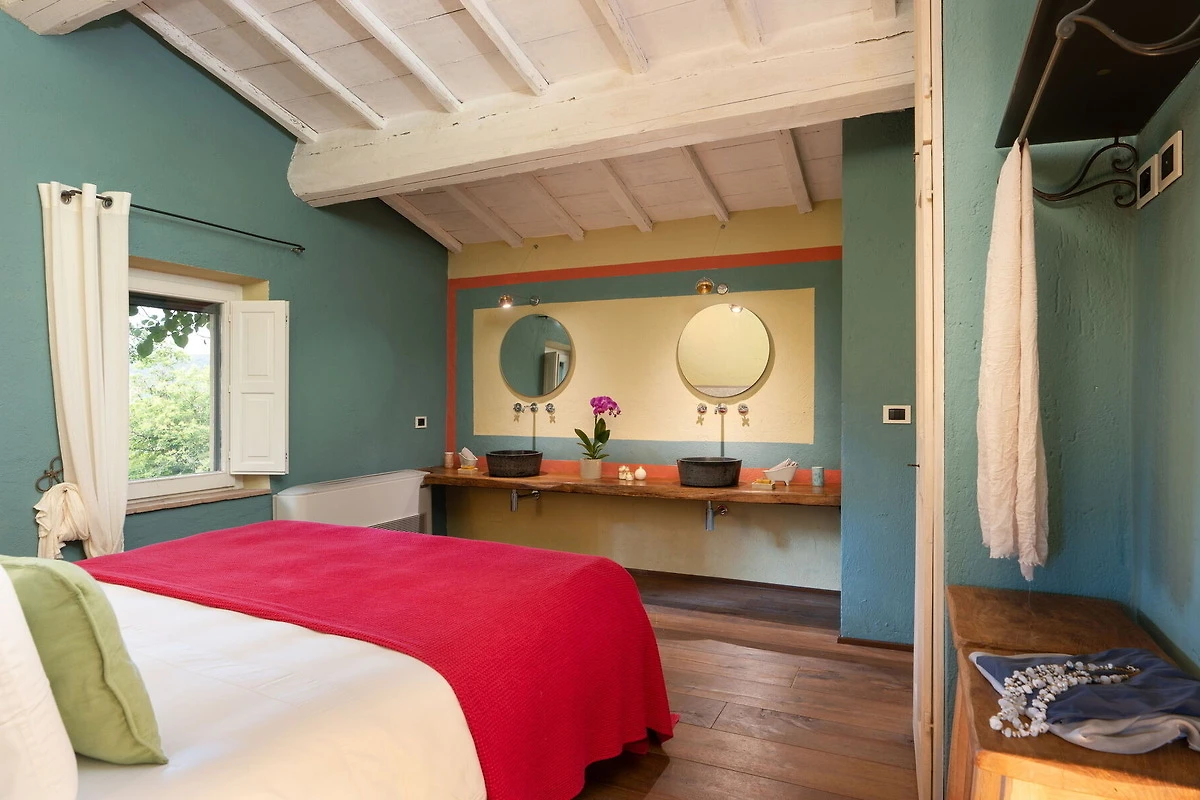 Insgesamt zeichnen sich die Innenräume der Villa durch einen neu interpretierten toskanischen Stil aus, der traditionelle Elemente mit modernen und designorientierten Details kombiniert. Die Liebe zum Detail, die Verwendung hochwertiger Materialien und die elegante Einrichtung schaffen eine luxuriöse und komfortable Umgebung für die Gäste.