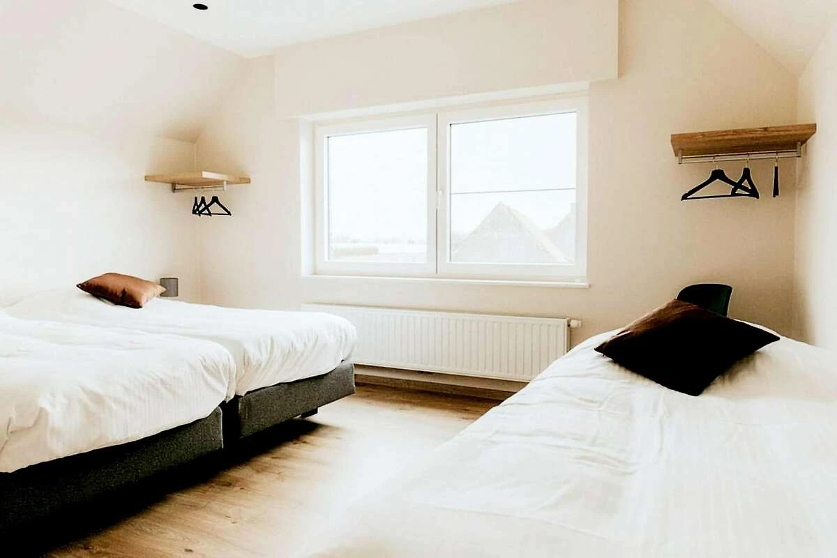 De Veldhoek ist ein wunderschön renoviertes Luxus-Bauernhaus inmitten der grünen Landschaft nahe Brügge. Diese elegante Oase bietet Platz für bis zu 12 Gäste und ist ideal für Familien, Freunde und kleine Gruppen, die Komfort, viel Platz und Ruhe suchen. Das Anwesen verfügt über vier stilvolle Schlafzimmer mit hochwertigen Boxspringbetten, zwei moderne Badezimmer und ein gemütliches Wohnzimmer, in dem Sie vor dem Smart-TV entspannen oder am großen Esstisch gemeinsam speisen können. Die voll ausgestattete Küche lädt zu kulinarischen Abenteuern ein, während der angrenzende Hauswirtschaftsraum mit Waschmaschine, Trockner und zusätzlichem Stauraum für einen komfortablen und unkomplizierten Aufenthalt sorgt.