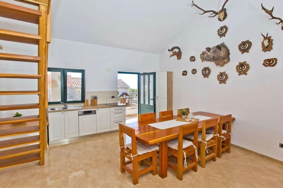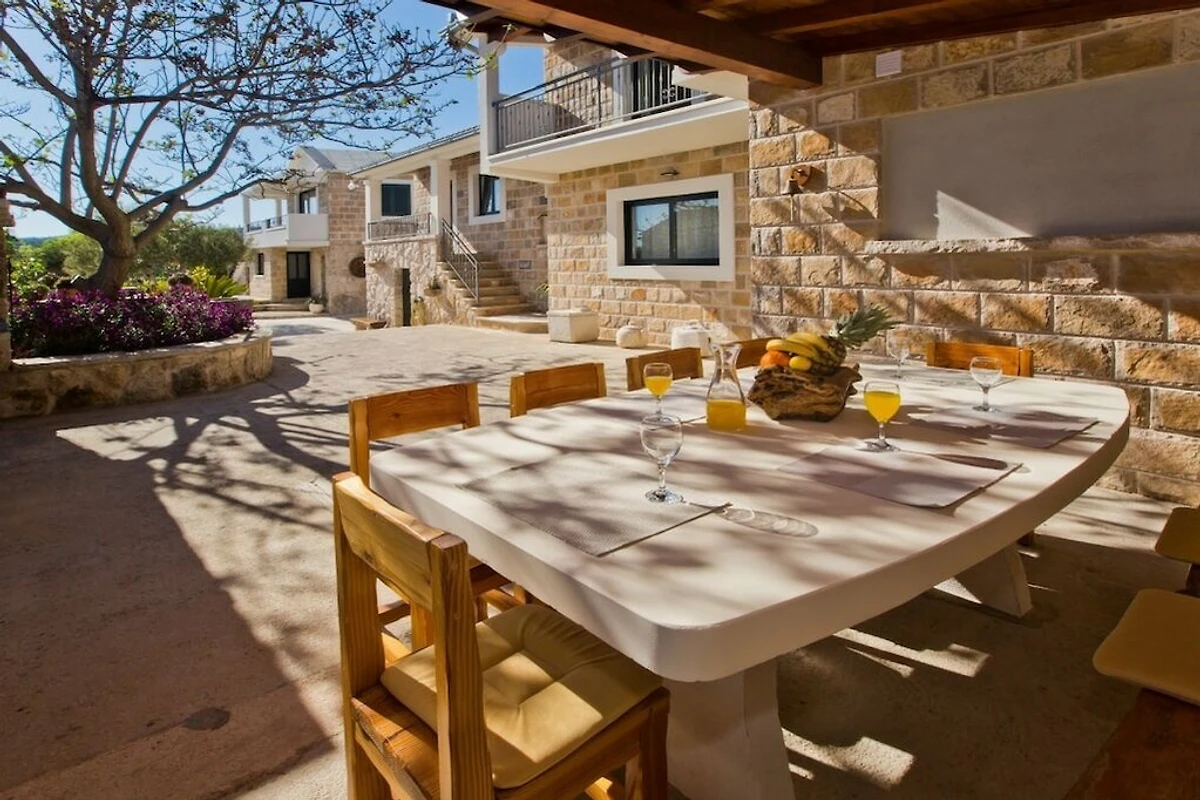 Diese schöne Villa erstreckt sich über 2000 Quadratmeter und bietet Platz für 8 Personen als Gäste. Die Villa ist sehr ruhig gelegen und bietet alles, was Sie für einen perfekten Urlaub brauchen. Es wird als eingezäuntes Grundstück mit Garten, Swimmingpool, Kinderspielplatz, Privatparkplatz, Innen- und Außengrill und einem überdachten Sitzbereich vermietet. Es befindet sich in Bogomolje, einem kleinen Dorf auf der Insel Hvar.