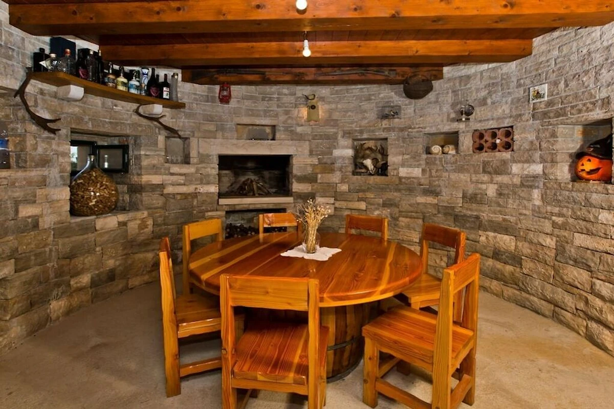 - einem runden Steinhaus zum Grillen, das als Erinnerung an die vergessene Lebensweise der Bauernfamilien und ein Denkmal für ihre harte Arbeit gebaut ist.