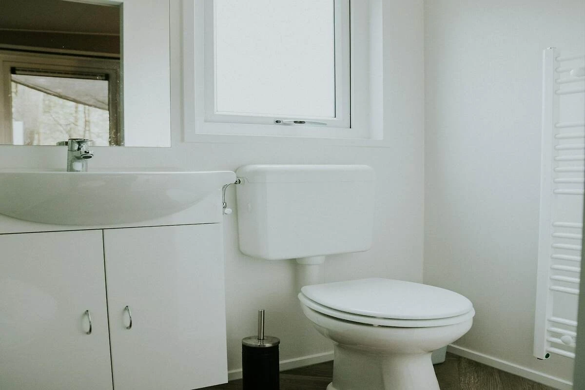 Im Inneren empfängt Sie die Lodge mit einem hellen und gemütlichen Ambiente. Der komfortable Wohnbereich lädt zum Entspannen nach einem Tag in der Natur ein. Die offene Küche ist komplett ausgestattet, inklusive Geschirrspüler und Dolce Gusto Kaffeemaschine, sodass Sie gemeinsam unkompliziert kochen können. Mit zwei Schlafzimmern (ein Hauptschlafzimmer mit Boxspringbett und ein zweites mit Etagenbett und Zustellbett) und einem modernen Badezimmer ist die Lodge ideal für Familien oder kleine Gruppen, die Wert auf Geräumigkeit und unkomplizierten Komfort legen.