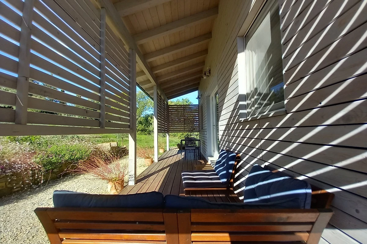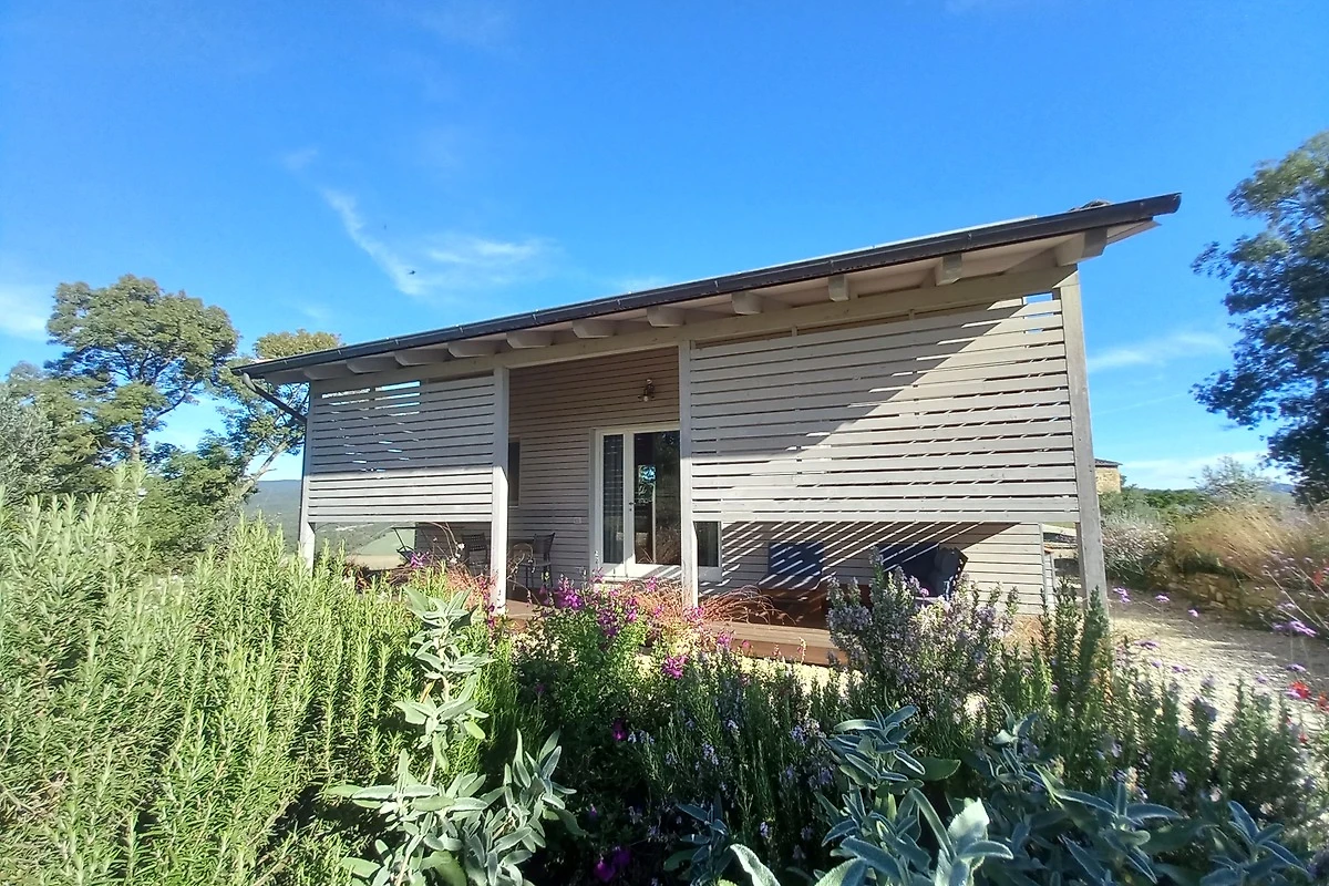 Das Ökohaus wurde 2019 aus 100 % nachhaltigen Materialien erbaut. Es ist vom Haupthaus unabhängig und verfügt über eine große private Terrasse mit Sitz- und Essbereich im Freien.