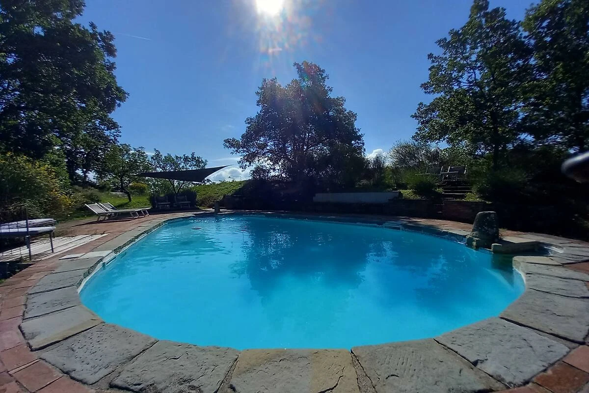 In ca. 90 m Entfernung vom Ferienhaus befindet sich ein sehr schöner Swimming-Pool zur gemeinsamen Nutzung mit weiteren Gäste von zwei kleinen Appartements im Bauernhaus. (max. 6 Peronen)
