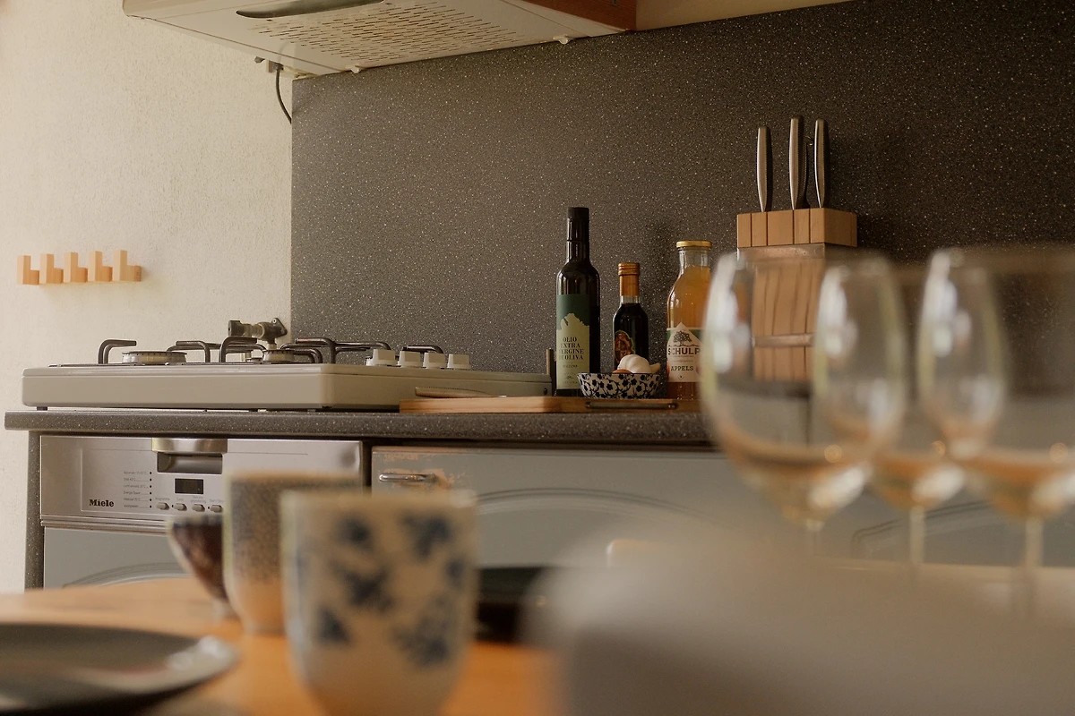 Die voll ausgestattete Küchenzeile bietet alles, was das Herz begehrt: Neben einem Geschirrspüler finden Sie einen Wasserkocher, eine Kaffeemaschine und sämtliche Küchenutensilien für genussvolle Mahlzeiten. Im Schlafzimmer sorgt frische Bettwäsche für erholsamen Schlaf, während das moderne Bad mit Dusche, WC und Haartrockner einen komfortablen Start in den Tag garantiert.