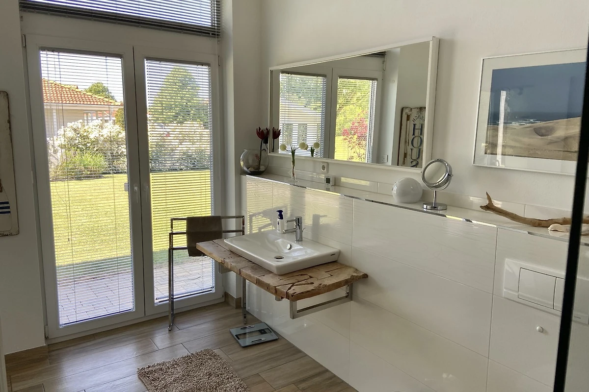 Genießen Sie sonnige Stunden auf der Terrasse oder im gepflegten Garten, der mit gemütlichen Sitzgelegenheiten und einem Grill zu geselligen Abenden einlädt. Für Ihr Fahrzeug steht ein eigener Carport zur Verfügung. Im Badezimmer finden Sie neben einem Haartrockner auch eine Waschmaschine sowie ein Bügeleisen – ideal für längere Aufenthalte. Selbstverständlich sind WLAN und TV vorhanden, damit Sie auch im Urlaub bestens vernetzt bleiben. Das Haus ist ausschließlich für Nichtraucher und bietet eine allergenarme Umgebung – perfekt für Gäste mit besonderen Ansprüchen. Das Ferienhaus Am Ufer 7 ist auch für Langzeitaufenthalte geeignet und verspricht Ihnen eine erholsame Auszeit nahe der Ostsee.