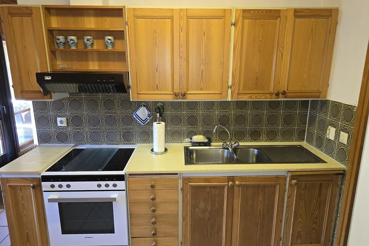 Voll ausgestattete Küche und Duschbad