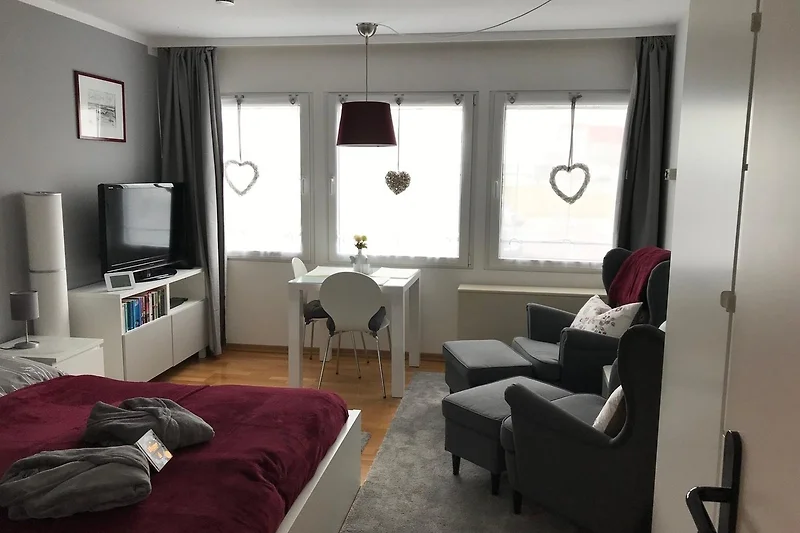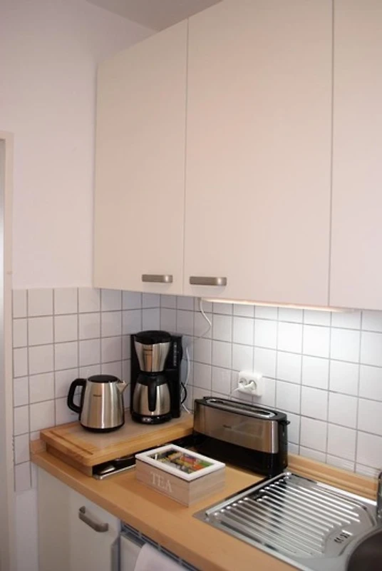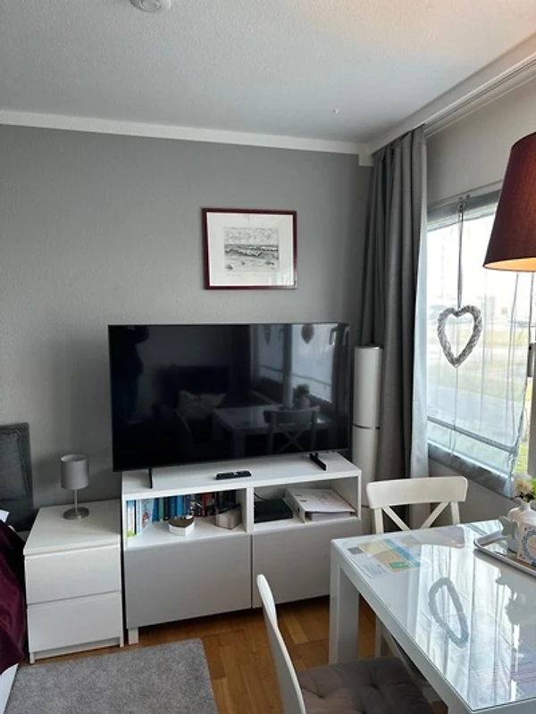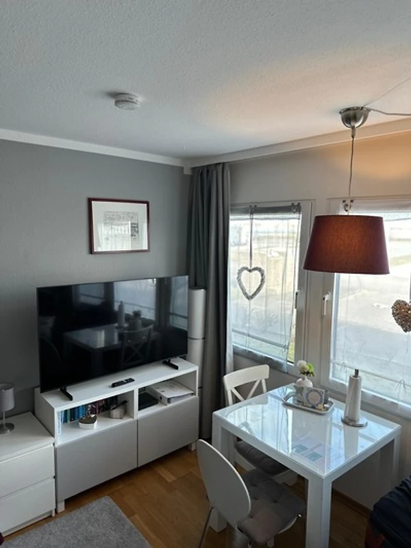 Hygge - Ein Lebensgefühl, das einfach glücklich macht. Nach diesem Gefühl haben wir unsere Ferienwohnung eingerichtet. Modern, hell und gemütlich. Egal bei welchem Wetter laden die beiden Ohrensessel zum gemütlichen verweilen ein. Die Wohnung verfügt über ein schönes Wannenbad, eine Küchenzeile, Esstisch mit Stühlen sowie TV Gerät und Blu-ray Player. Unsere Küchenzeile ist ausgestattet mit einem zwei Plattenherd, Kühlschrank, Wasserkocher, Eierkocher, Toaster und Kaffeemaschine. Bücher und Spielkarten/Gesellschaftsspiele/ DVD sind ebenfalls vorhanden.