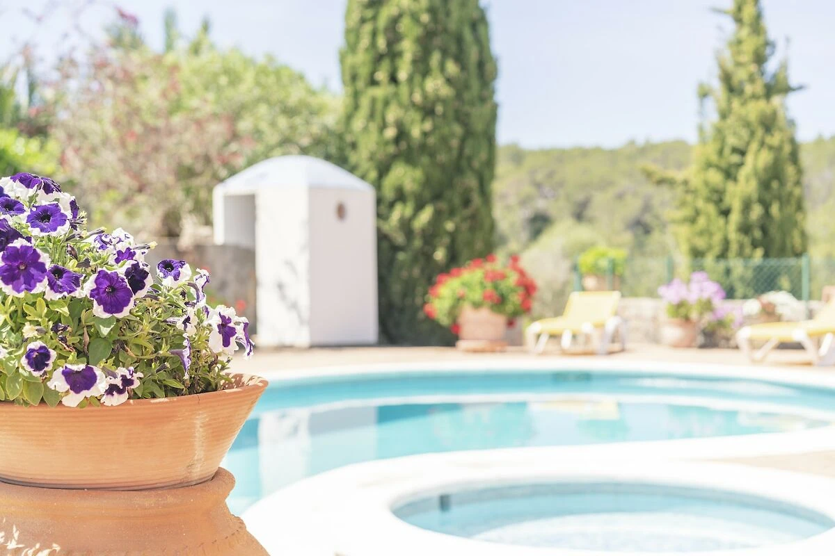 Genießen Sie Luxus in diesem Herrenhaus mit 3 Schlafzimmern für 6 Personen im ländlichen Santa Eulària des Riu. Die Unterkunft bietet einen privaten Pool und eine Terrasse und ist somit ideal für Familien und kleine Gruppen im Urlaub.