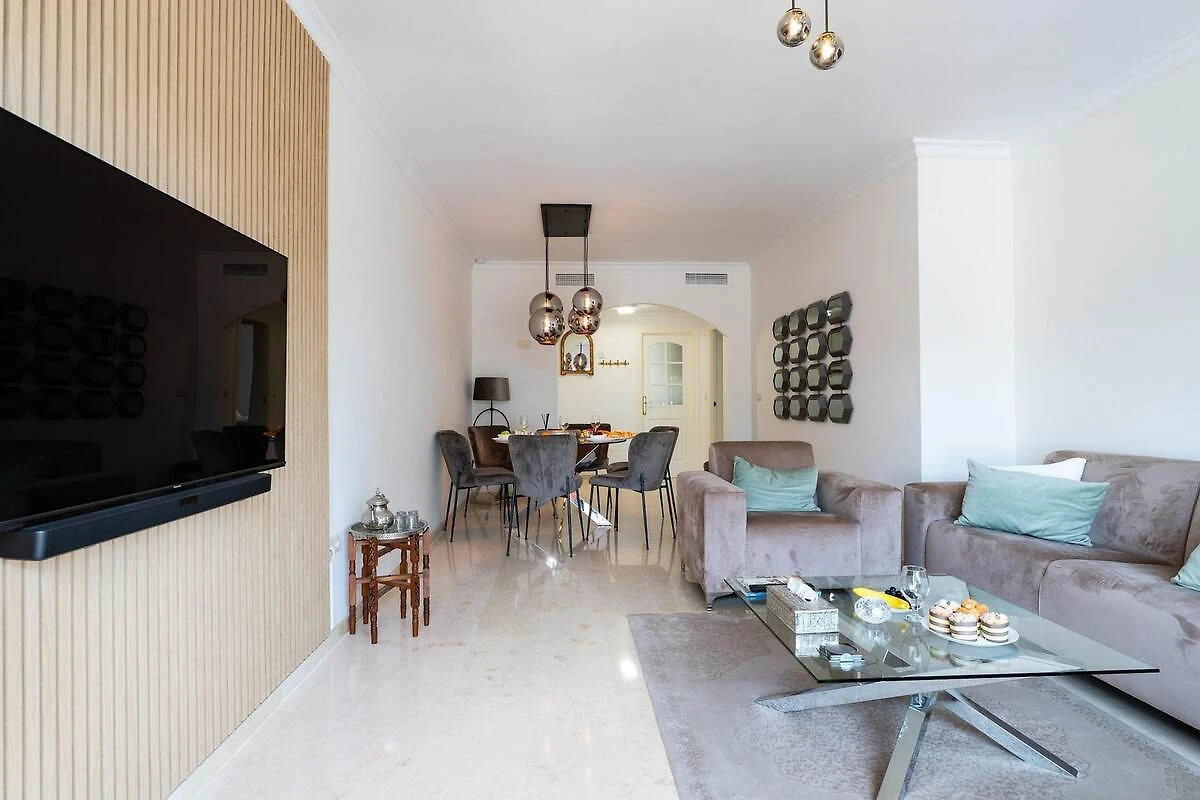 Entdecken Sie die wahre Entspannung in dieser bezaubernden Ferienwohnung in einer ruhigen Wohnanlage in Elviria, Marbella. Perfekt für Paare, Familien oder Freunde konzipiert, bietet sie alles, was Sie für einen unbeschwerten Aufenthalt an der sonnenverwöhnten Costa del Sol benötigen. Die Wohnung verfügt über zwei gemütliche Doppelzimmer, zwei Badezimmer mit Badewanne, eine voll ausgestattete Küche mit allen wichtigen Utensilien für die Hausmannskost und einen hellen Wohn- und Essbereich mit großen Fenstern, die auf eine schöne private Terrasse führen.