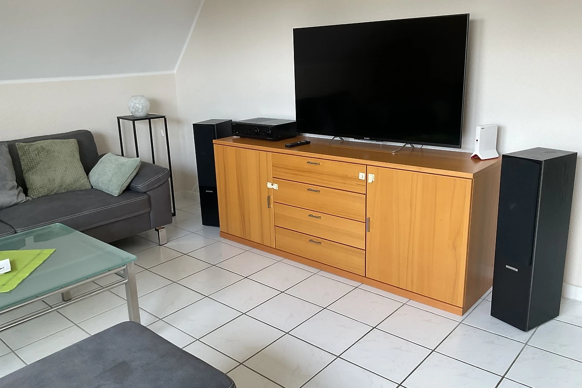 Willkommen in der FewoLüdi21 – Ihrer großzügigen Ferienwohnung im Herzen von Lüdinghausen im Münsterland! Auf 90 m² finden bis zu 4 Gäste alles, was einen entspannten Aufenthalt ausmacht: Drei Schlafzimmer bieten ausreichend Rückzugsmöglichkeiten, während der lichtdurchflutete Wohnbereich zum gemeinsamen Verweilen einlädt. Genießen Sie Ihr Frühstück auf dem Balkon oder entspannen Sie nach einem Ausflug in der gemütlichen Sitzecke. Die voll ausgestattete Küchenzeile verfügt über einen Geschirrspüler, eine Mikrowelle, einen Wasserkocher sowie eine Kaffeemaschine – ideal, um sich kulinarisch zu verwöhnen. Ein moderner TV sorgt für Unterhaltung, während Ihnen kostenfreies WLAN jederzeit zur Verfügung steht. Bettwäsche ist inklusive, ebenso wie ein eigener Parkplatz direkt am Haus. Praktisch für längere Aufenthalte: Waschmaschine, Trockner, Bügeleisen und Föhn sind vorhanden. Die Wohnung ist ausschließlich für Nichtraucher und eignet sich auch hervorragend für Monteure oder Langzeitgäste. Für Ihren Komfort stehen zahlreiche Staumöglichkeiten, ein stilvoll gefliestes Bad sowie viel Platz für gesellige Abende bereit. Lassen Sie sich von der entspannten Atmosphäre begeistern und erleben Sie das Münsterland von seiner besten Seite!