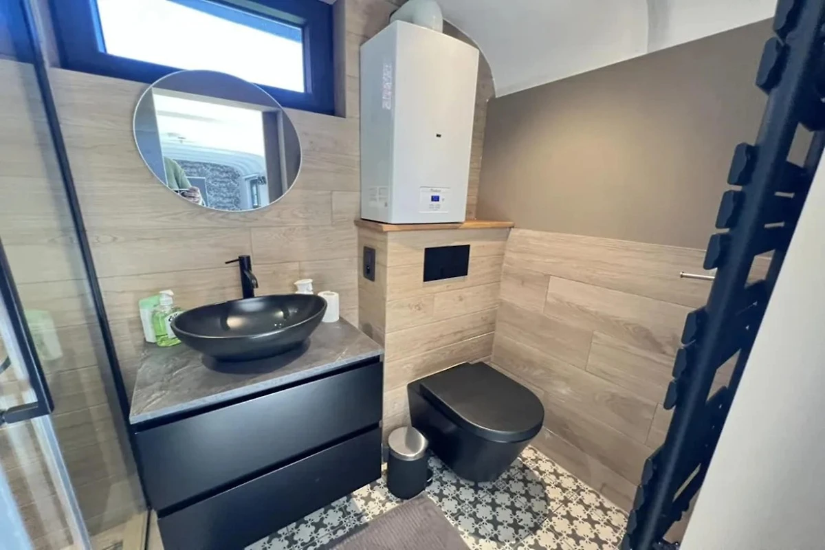 Offene Küche(Wasserkocher, Espressomaschine, Backofen, Mikrowelle, Kühl-/Gefrierkombination, ), Wohn/Esszimmer(TV, Esstisch, Sitzecke), Schlafzimmer(Doppelbett), Badezimmer(Dusche, Waschbecken, Toilette), Internet, Heizung(elektrisch), Terrasse, Garten, Gartenmöbel, Grill(Gas)