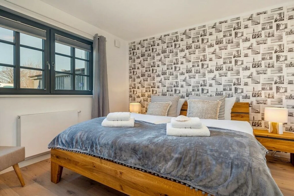 Das Schlafzimmer ist mit einem komfortablen Bett mit den Maßen (180cm x 200cm) für ein erholsamen Schlaf ausgestattet.