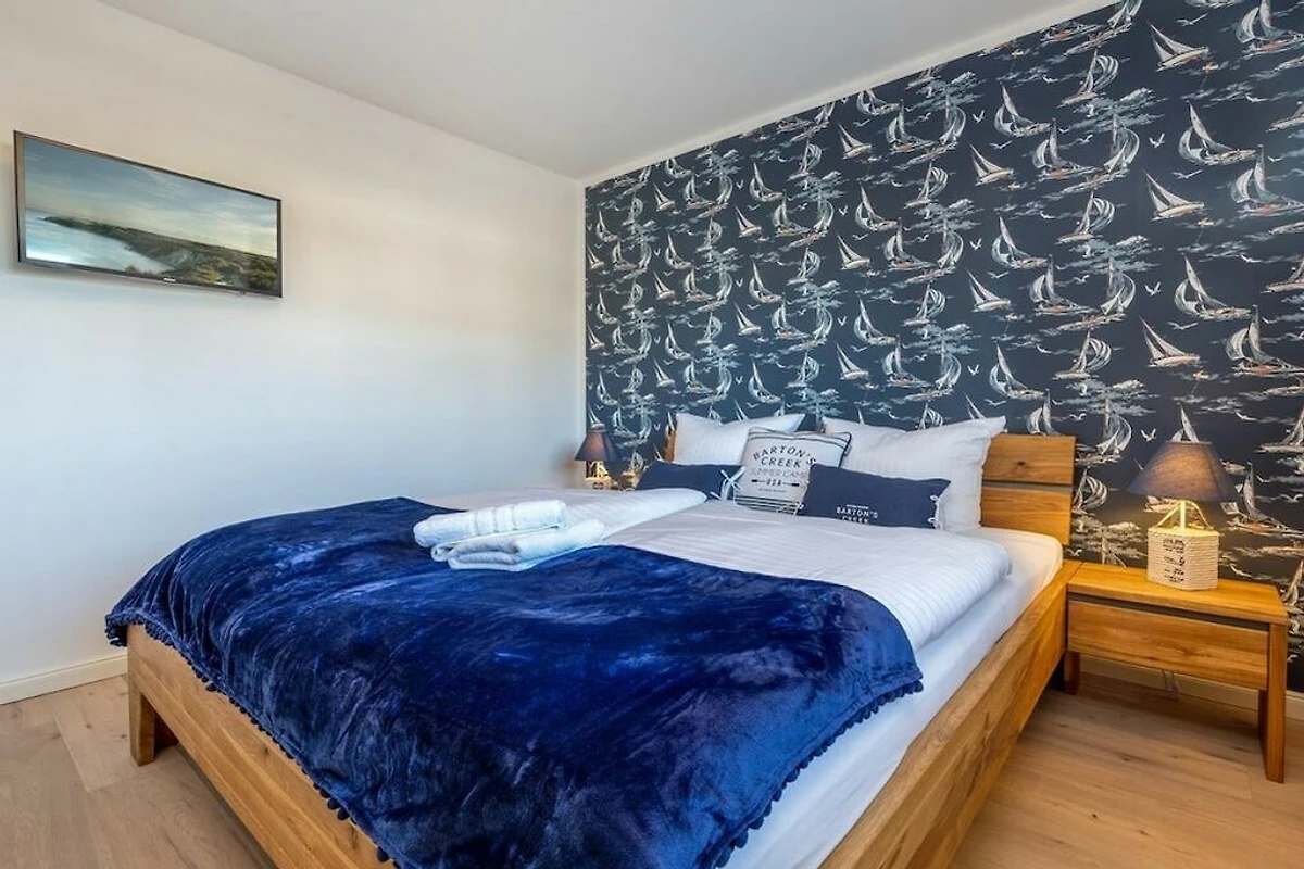 Das Schlafzimmer ist mit einem komfortablen Bett mit den Maßen (180cm x 200cm) für ein erholsamen Schlaf ausgestattet.