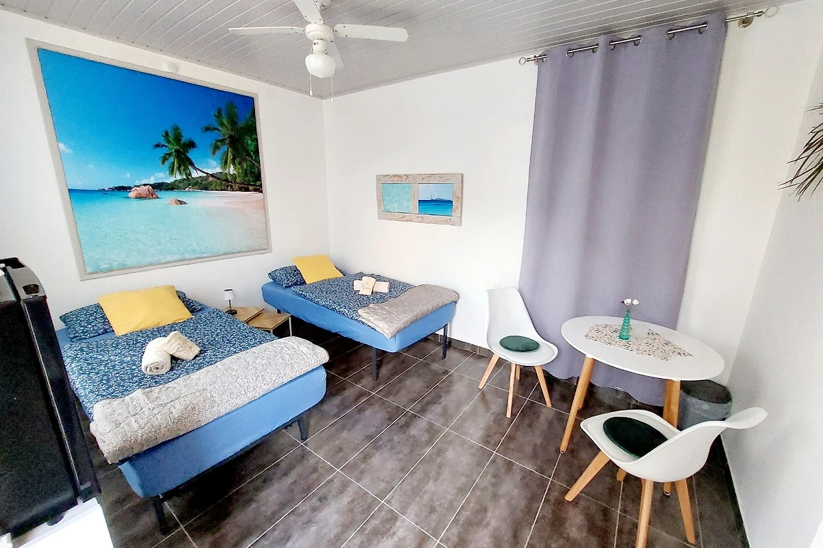 Auf dem Gelände neben dem Grillplatz befindet sich ein Studio, welches verschlossen bleibt, wenn nur das Haupthaus gebucht wird. Es besteht aber die Möglichkeit gegen Aufpreis das Studio mit zu mieten. Es gibt dort 2 Schlafplätze (je 90x190cm) mit einer kleinen Sitzgelegenheit und Tisch, Mikrowelle und kleinem Kühlschrank sowie Deckenventilator. Das Badezimmer mit begehbarer Dusche ist erst vor kurzem renoviert worden.