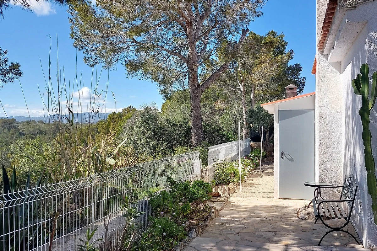 Das Gelände mit freistehendem Haus und großem Garten ist komplett eingezäunt und bietet Ihnen den südländischen Flair der tropischen und einheimischen Pflanzenwelt, einen privaten, kaum einsehbaren Pool von 5x9 m, eine Terrasse mit Sitzplätzen unter Palmen und einen überdachten Grillplatz zum Genießen bei einem fantastischen Ausblick, z.B. aus der Doppel-Hängematte in den Barranco de Torrent del Pi.
