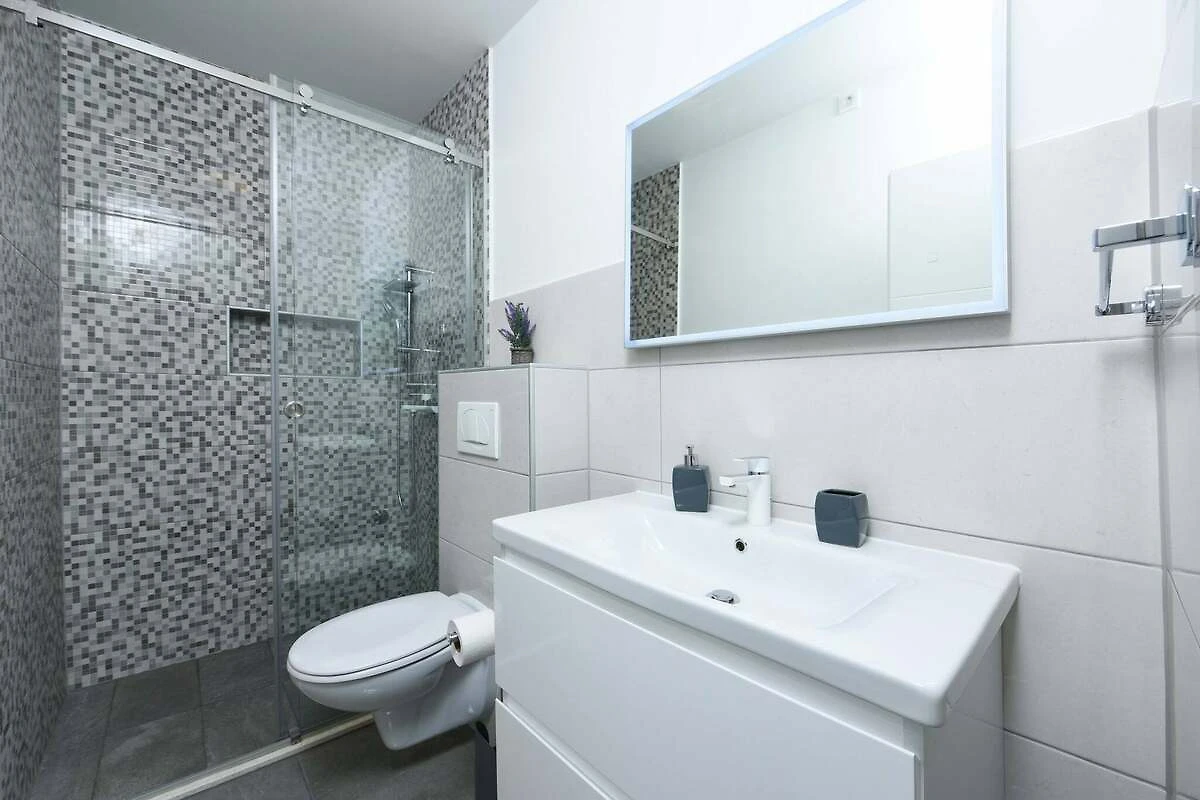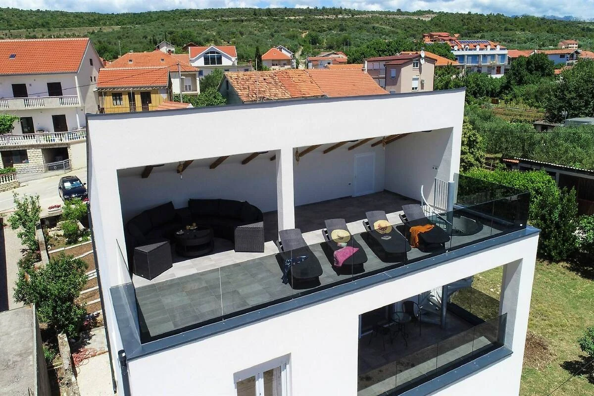 Dieses moderne Ferienhaus liegt im charmanten Küstendorf Posedarje und bietet einen atemberaubenden Meerblick. Es ist nur 200 Meter vom nächsten Strand entfernt. Es ist auf Entspannung und Komfort ausgelegt und eignet sich ideal für größere Familien oder Gruppen, da es in zwei geräumigen Apartments Platz für bis zu 11 Gäste bietet. Die Dachterrasse bietet einen atemberaubenden Panoramablick auf die Adria und die umliegende Natur – ein perfekter Ort, um bei Sonnenuntergang zu entspannen oder einen Morgenkaffee mit dem Rauschen der Wellen in der Nähe zu genießen.