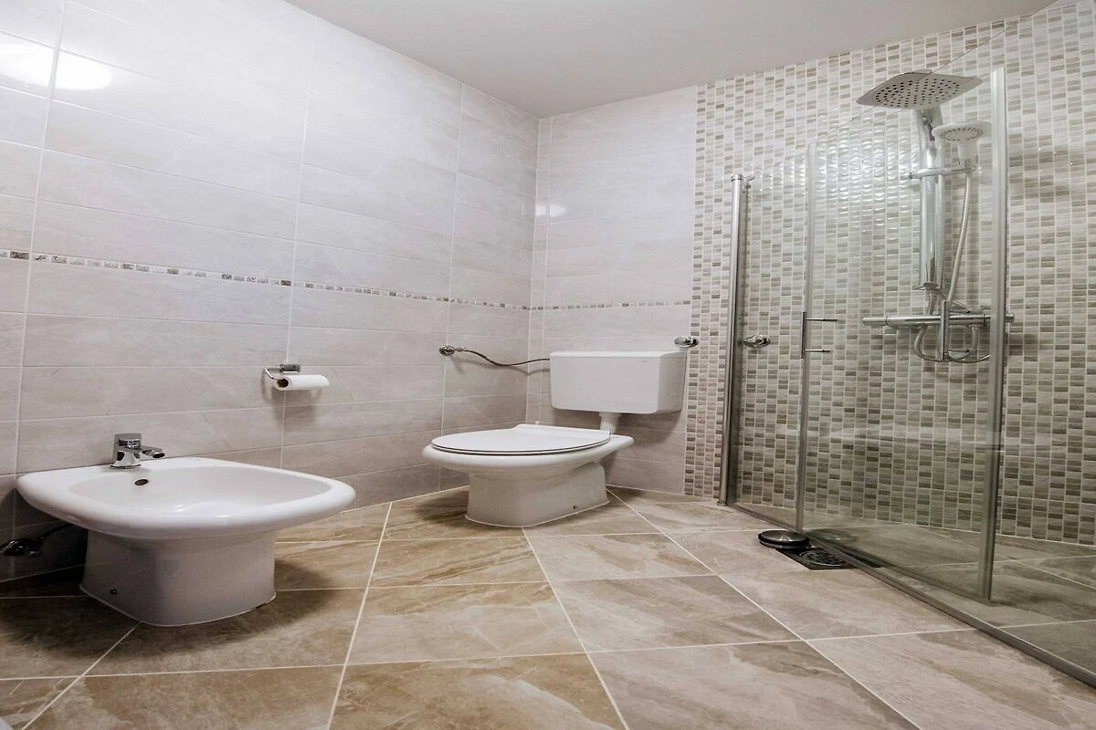 In der 1. Etage: (Schlafzimmer(Schlafcouch 1 Pers., Doppelbett, TV, Klimaanlage), Schlafzimmer(Doppelbett, Klimaanlage), Schlafzimmer(Doppelbett, Klimaanlage), Badezimmer(Dusche, Waschbecken, Toilette, Bidet), Badezimmer(Dusche, Waschbecken, Toilette, Bidet), Toilette(Waschbecken, Toilette, Bidet))