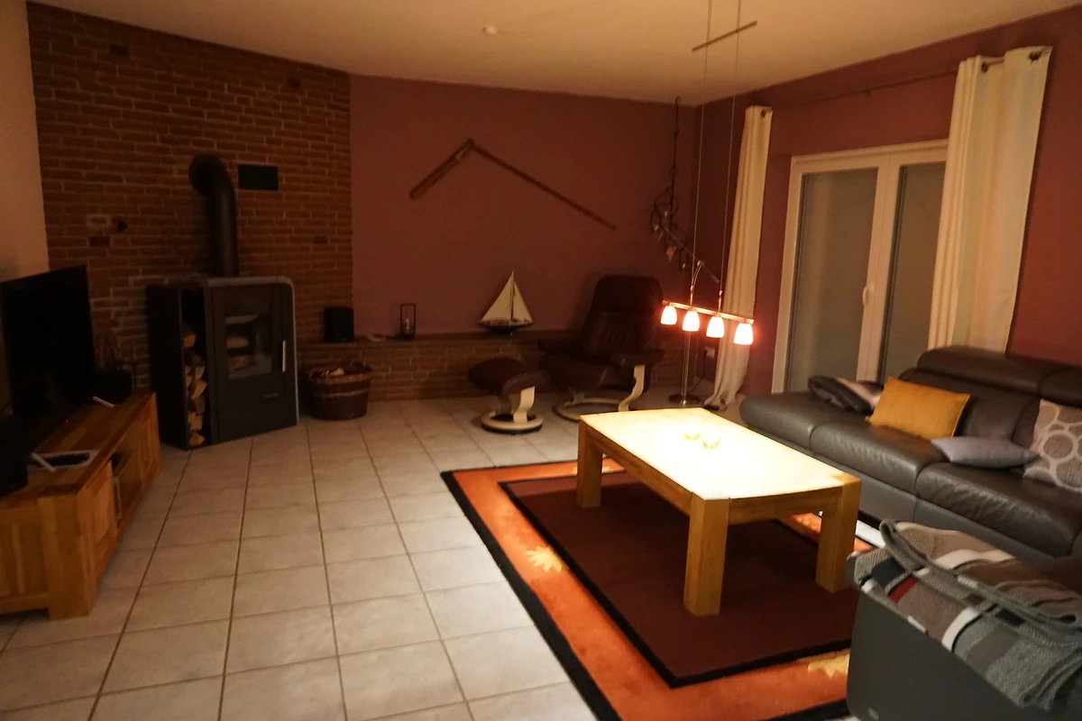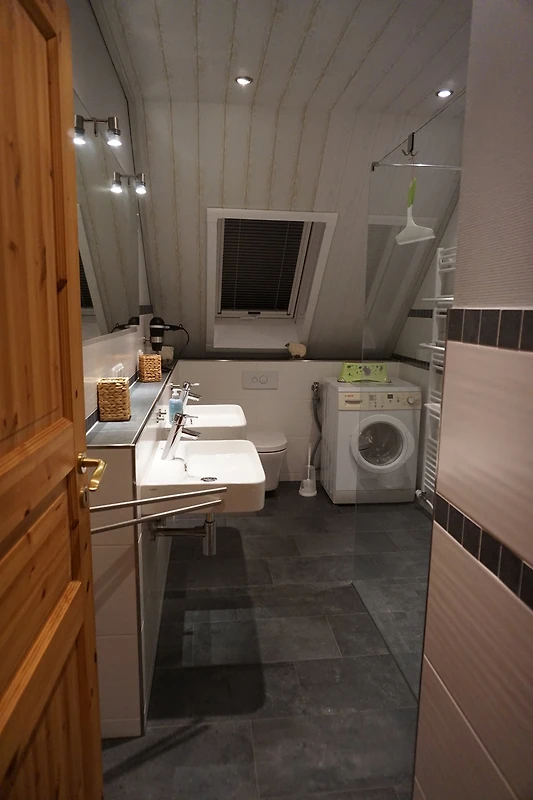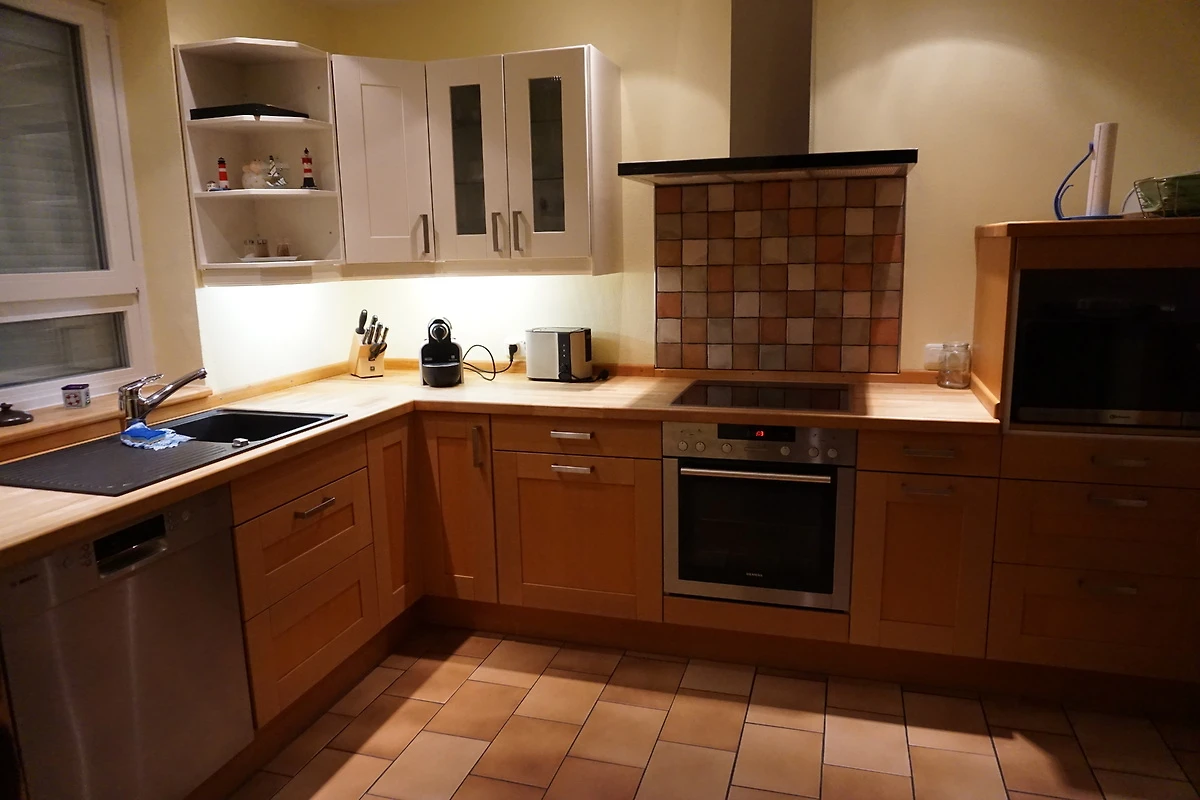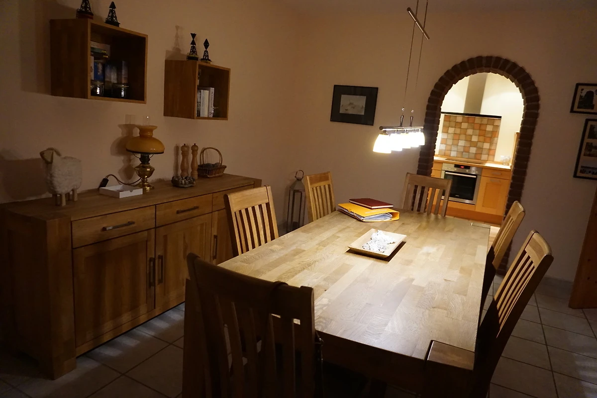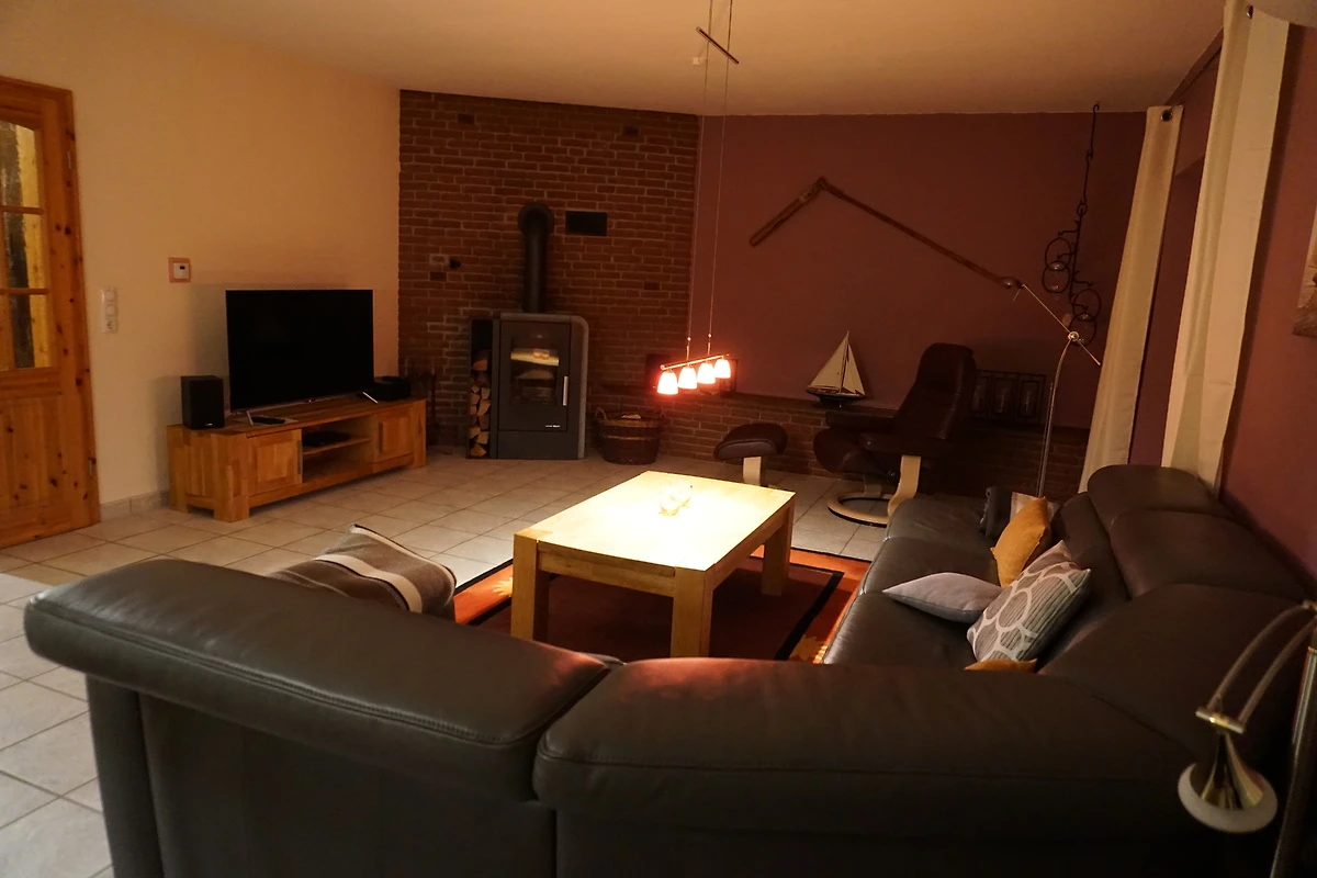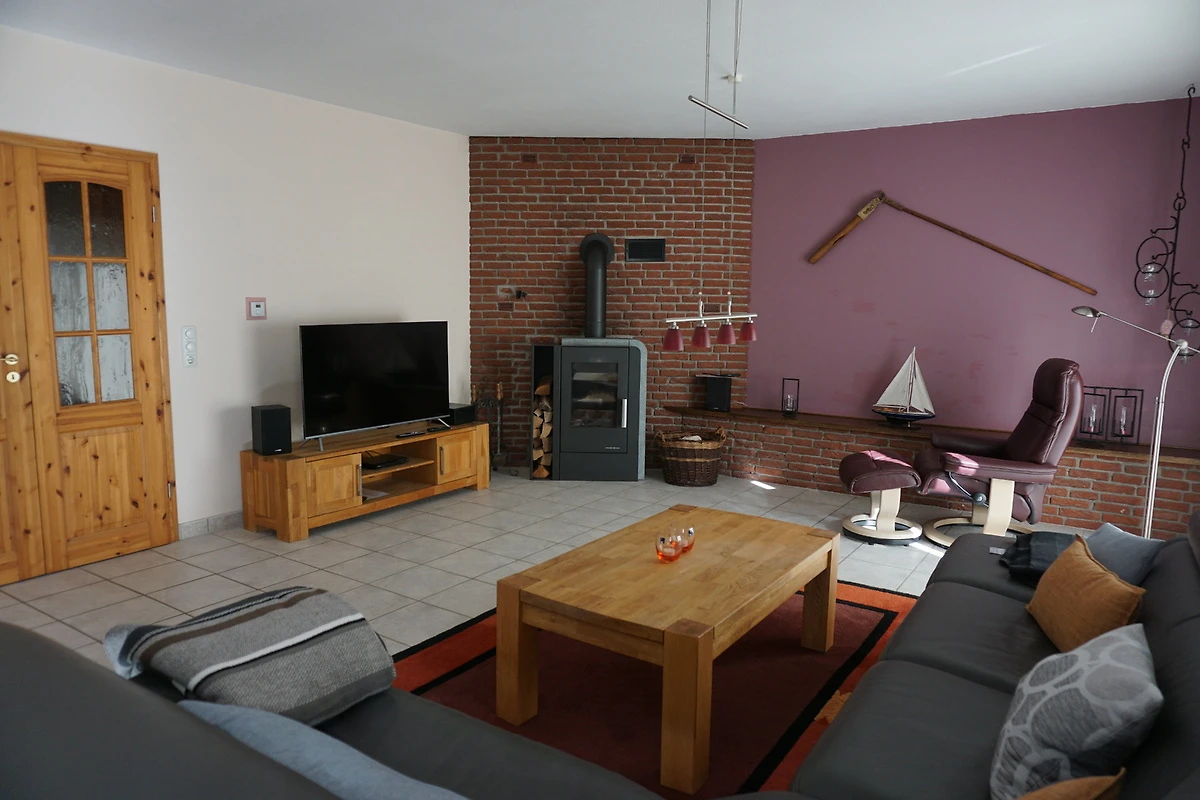 Die neu umgebaute, renovierte und zeitgemäß eingerichtete Doppelhaushälfte hat eine Wohnfläche von 130 qm und ist für bis zu 6 Personen geeignet. Der gemütliche Wohnbereich mit Kaminofen, Flachbild TV, DVD-Player und Radio/CD lädt zum Verweilen und Relaxen ein. Die grosszügige Essecke lässt jede Mahlzeit zum Genuss werden. Von hier aus schließt sich die hochwertig eingerichtete Einbauküche an. Vom Flur geht noch ein Abstellraum und das Gäste-WC ab. Im 1. Stock befinden sich 3 Schlafzimmer, 2 davon mit Doppelbett und Fernseher und eines mit 2 Einzelbetten. Das Badezimmer mit 2 Waschbecken, WC, bodengleicher Dusche und Waschmaschine. Den Gästen steht die Nutzung eines kostenlosen WLAN zur Verfügung.