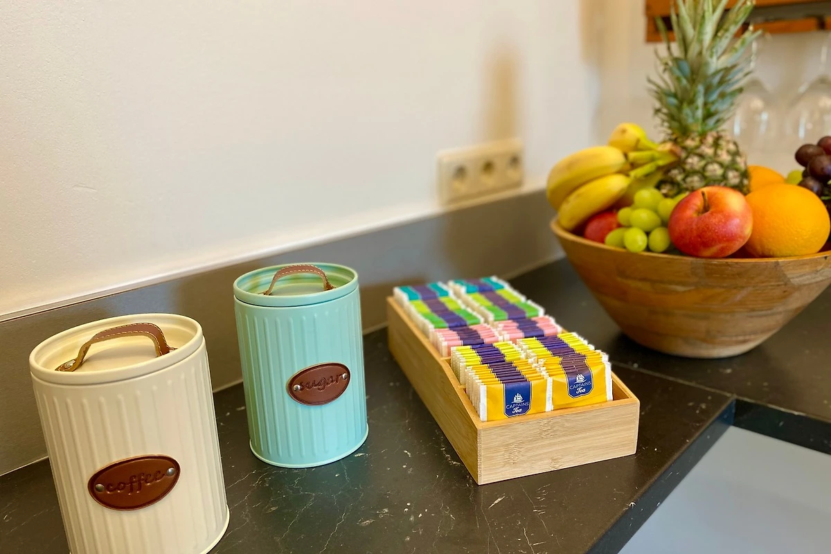 Zur Ausstattung gehören ausserdem Fussbodenheizung, kostenfreies WLAN, ein hauseigener Parkplatz direkt am Haus sowie ein Erstausstattungspaket für Küche und Bad.