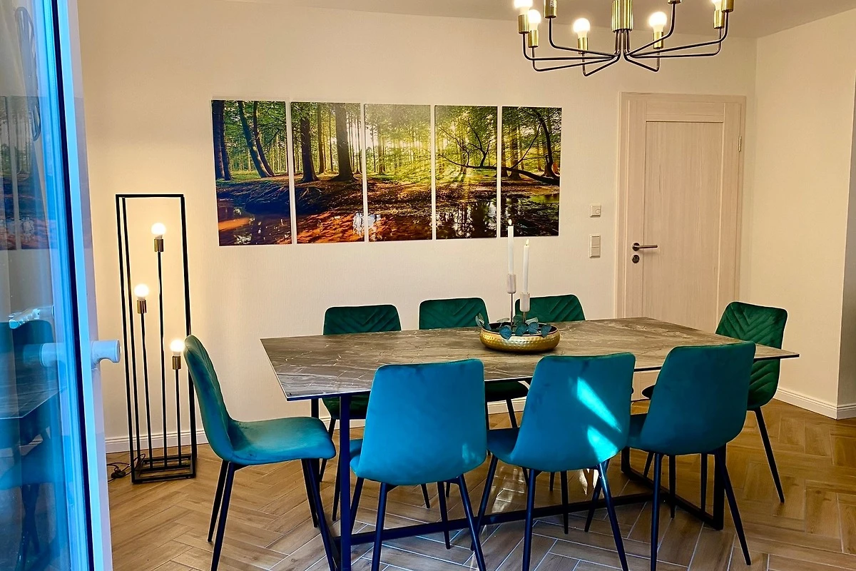 Das 150 m² grosse Haus bietet viel Platz für Familien und Freunde. Drei gemütliche Schlafzimmer ermöglichen komfortable Übernachtungen für bis zu 6 Personen. Zwei moderne Bäder – eines davon mit einer finnischen Sauna – und bodentiefe Duschen sorgen für Wellnessmomente nach einem aktiven Tag in der Harzer Natur.