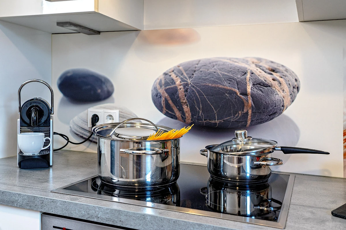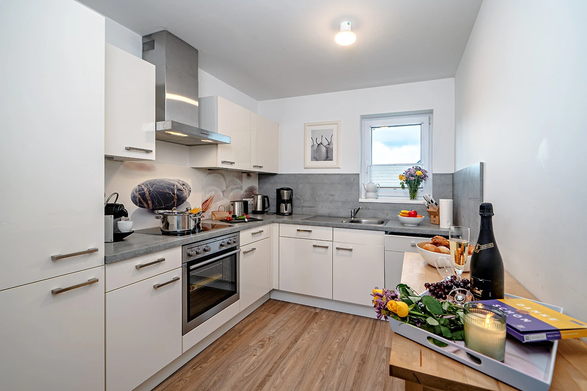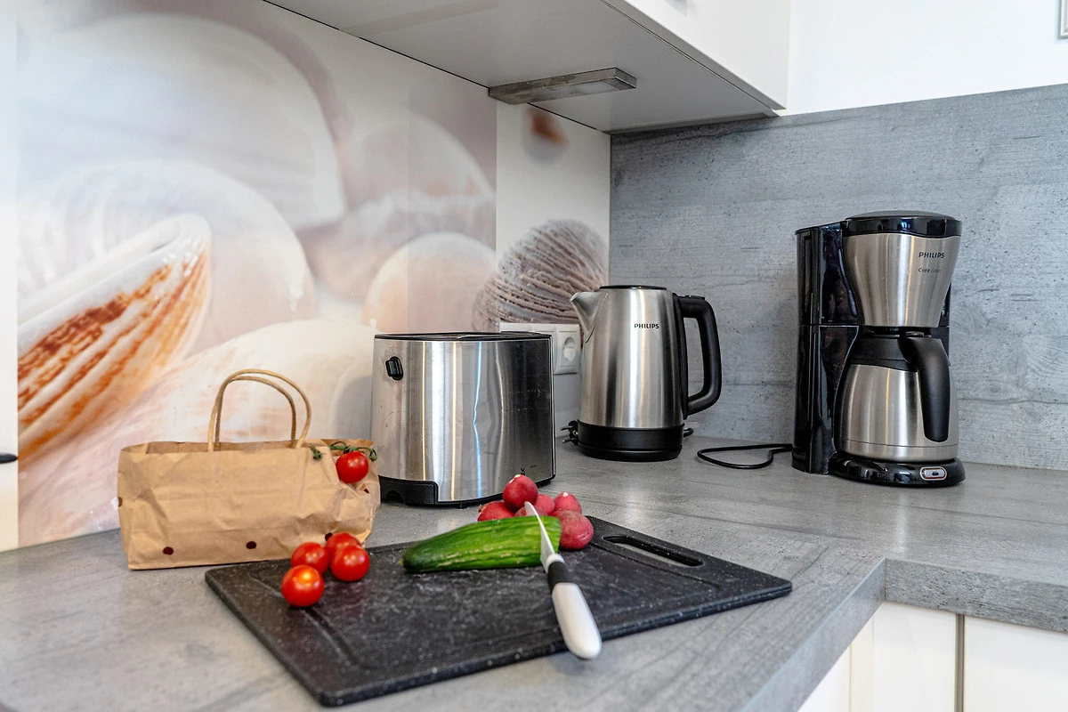 In der hochwertig ausgestatteten Küche stehen Ihnen eine Nespressomaschine für den perfekten Start in den Tag zur Verfügung. Ein extra Gefrierschrank ist in der Küche integriert.