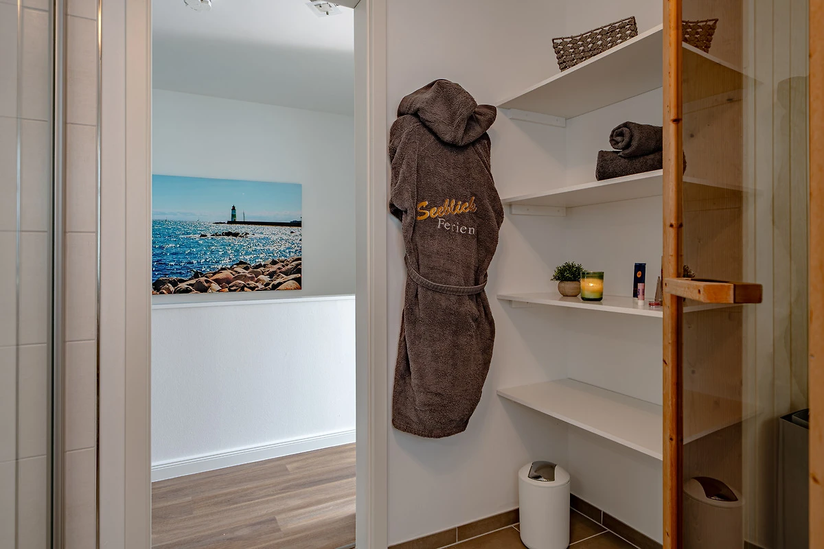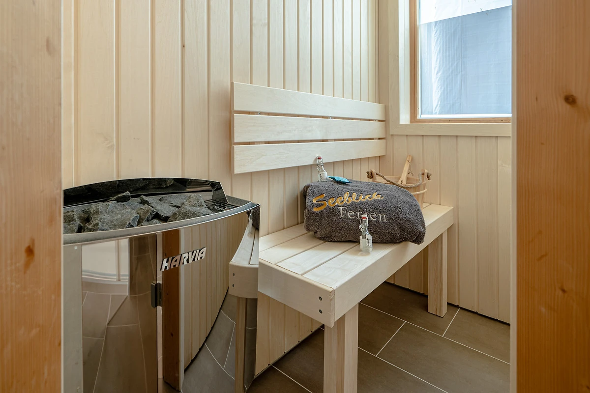Ebenfalls im ersten Obergeschoss befindet sich ein modernes Wellness-Badezimmer mit Dusche und finnischer Saunakabine – natürlich mit Wasserblick. Im Erdgeschoss steht zusätzlich ein Gäste-WC zur Verfügung, hier finden Sie auch eine Waschmaschine. Die gesammte Schleivilla Hafenblick by Seeblick Ferien ORO ist mit Fussbodenheizung ausgestattet, wodurch Komfort und Wärme zu jeder Jahreszeit garantiert sind.