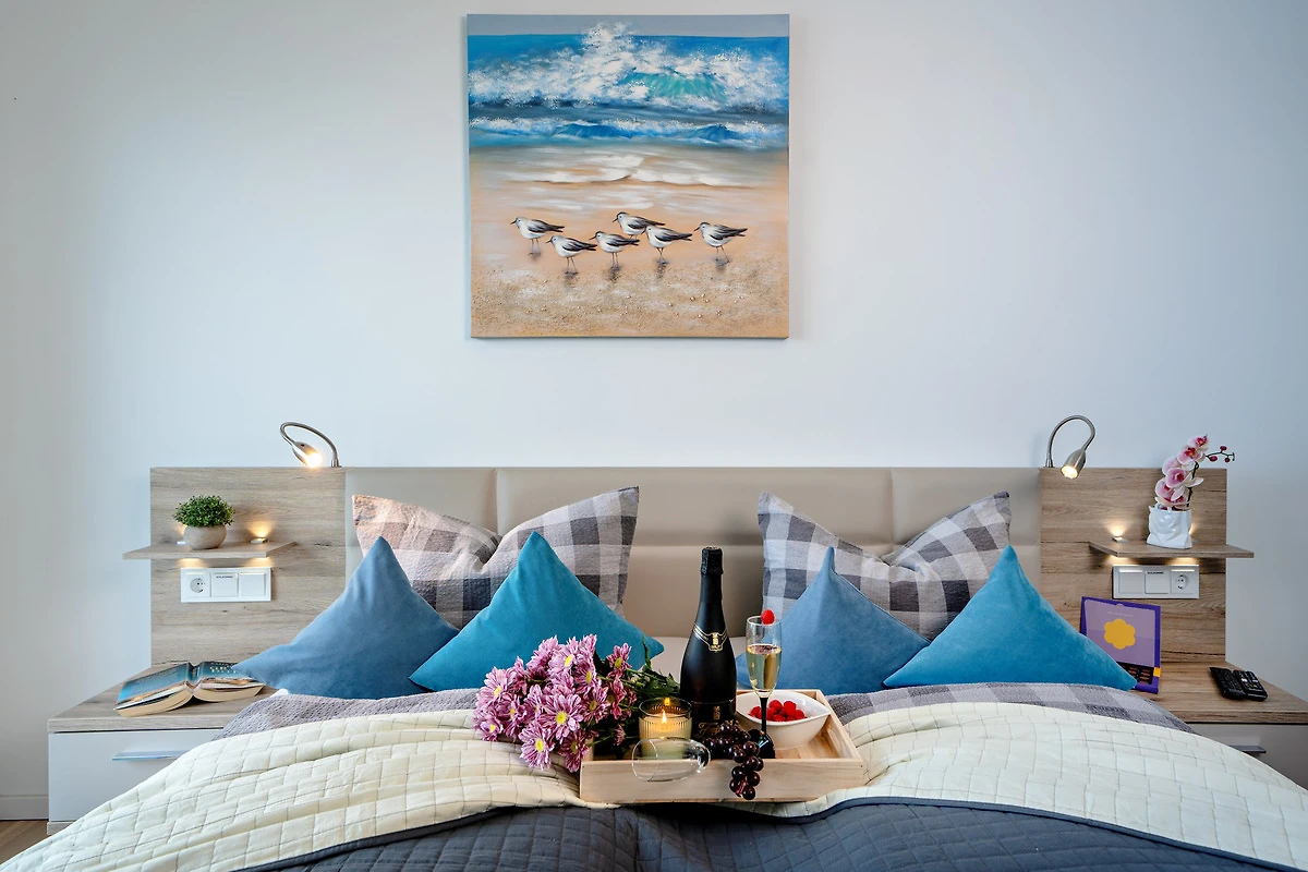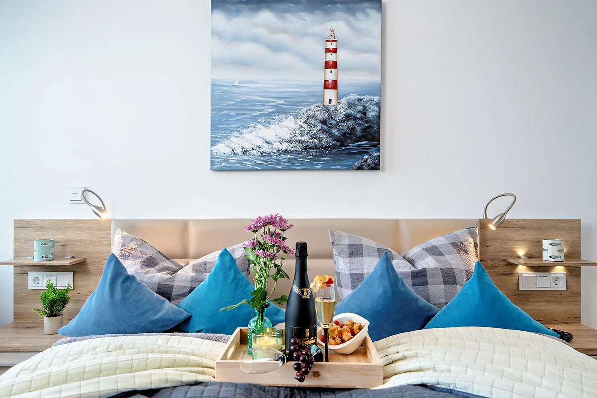 Starten Sie Ihren Tag mit einem köstlichen Frühstück, ohne das Haus verlassen zu müssen. Lehnen Sie sich zurück, atmen Sie die frische Meeresluft ein und geniessen Sie den Blick auf das glitzernde Wasser der Ostsee, während Sie Ihre gelieferten frischen Brötchen oder Croissants verspeisen, man könnte auch sagen Urlaub mit Seeblick Ferien ORO.