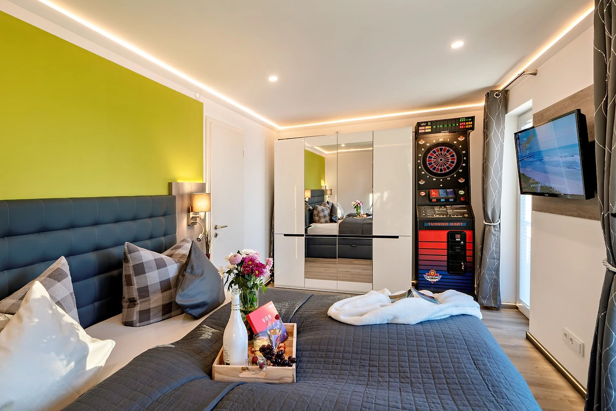 Das Ferienhaus ist nicht nur ein visuelles Meisterwerk, sondern auch technisch bestens ausgestattet. Ein 65" Samsung Smart TV im Wohnzimmer, Smart TV in beiden Schlafzimmern, Nintendo Wii U, Löwen Liga Dart HB8, kostenfreies Wlan, Prime Video, Alexa, USB Mediaplayer und eine Musik-Anlage mit Wlan / Bluetooth-Empfänger, Bluetooth Badezimmerspiegel sorgen für Unterhaltung.
