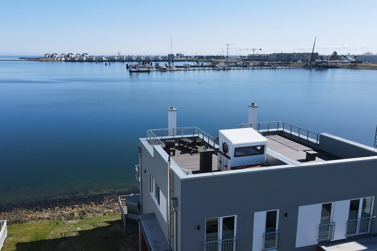 Willkommen in Ihrem exklusiven Refugium, die Schleivilla Kapitän James Cook2 by Seeblick Ferien ORO, ein Juwel direkt am Wasser im bezaubernden OstseeResort Olpenitz. Diese atemberaubende Doppelhaushälfte am Schleiufer 22, definiert Luxus neu und bietet ein unvergleichliches Erlebnis für anspruchsvolle Reisende, die das Besondere suchen. Geniessen Sie nicht nur den atemberaubenden Blick auf das Hafenkino vorne und die malerische Schlei hinten sondern auch ein Höchstmass an Komfort und Eleganz. Erleben Sie den Zauber der aufgehenden Sonne von Ihrer Terrasse und den romantischen Anblick des Sonnenuntergangs von der riesigen Dachterrasse mit dem Gosch Lounge 3.0 XXL Strandkorb, die einen Panoramablick in alle Richtungen ermöglicht. Hier, direkt am Wasser, erwacht der Tag zu einem Märchen aus Farben und Stimmungen und bietet ganztags Sonne.