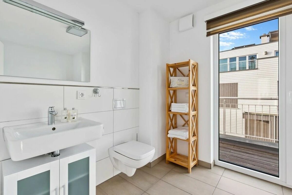Über allem thront die Dachterrasse, das absolute Juwel der Schleivilla Ahoi by Seeblick Ferien ORO. Hier geniessen Sie mit zwei bequemen Sonnenliegen einen unvergleichlichen 360°-Rundumblick: die Weite der Ostsee, die idyllische Schlei und das lebendige Treiben im Hafen. Morgens begrüsst Sie die Sonne über dem Meer, abends taucht sie den Himmel in warme Farben – ein Ort für unvergessliche Augenblicke.