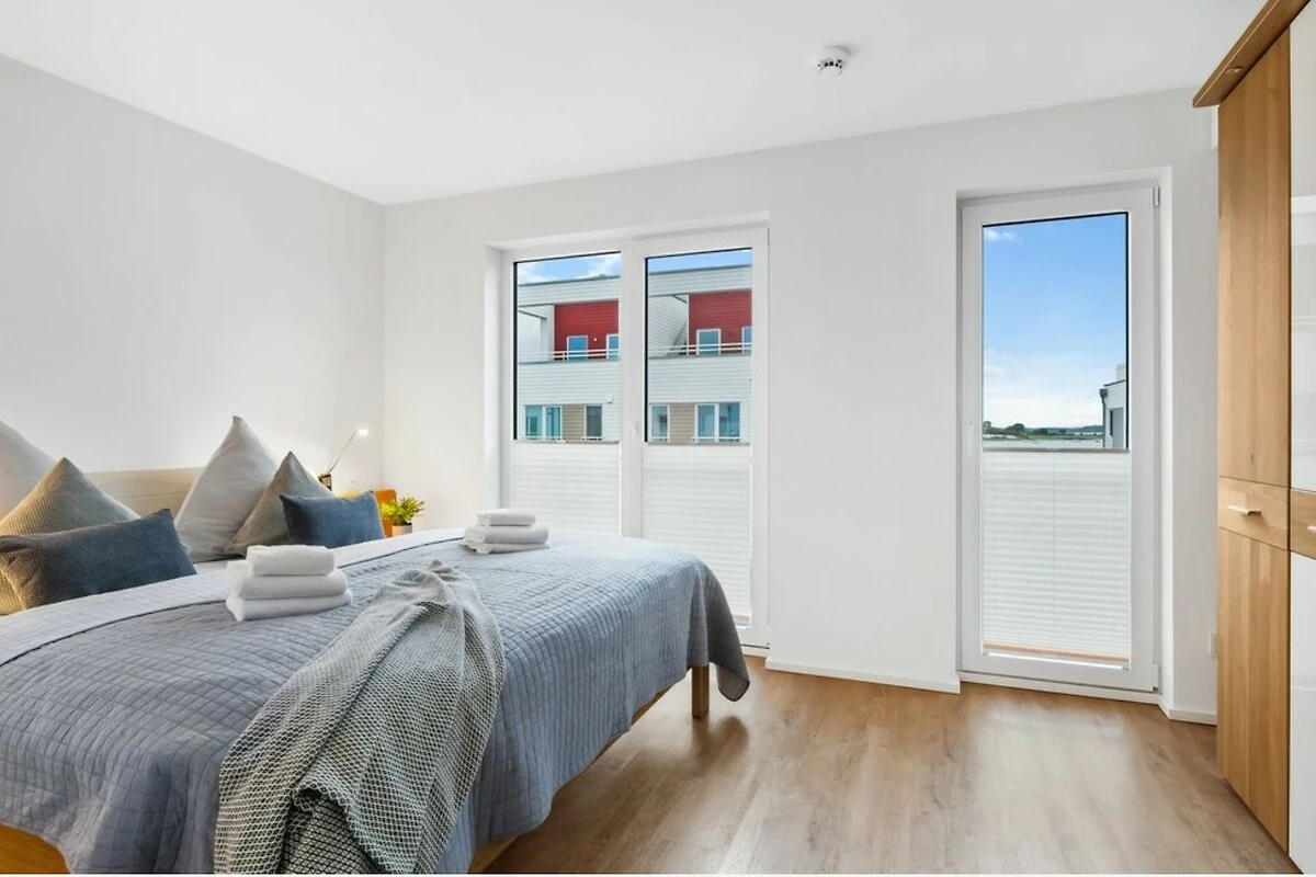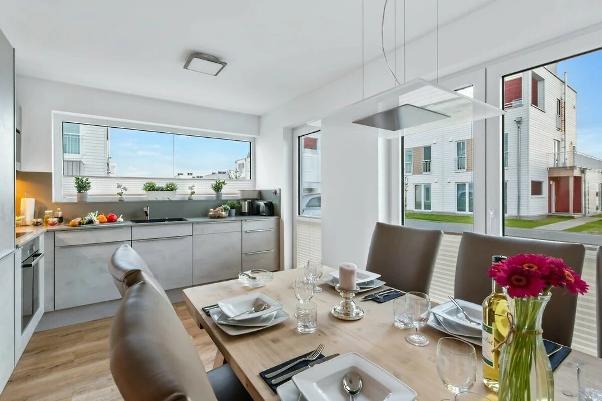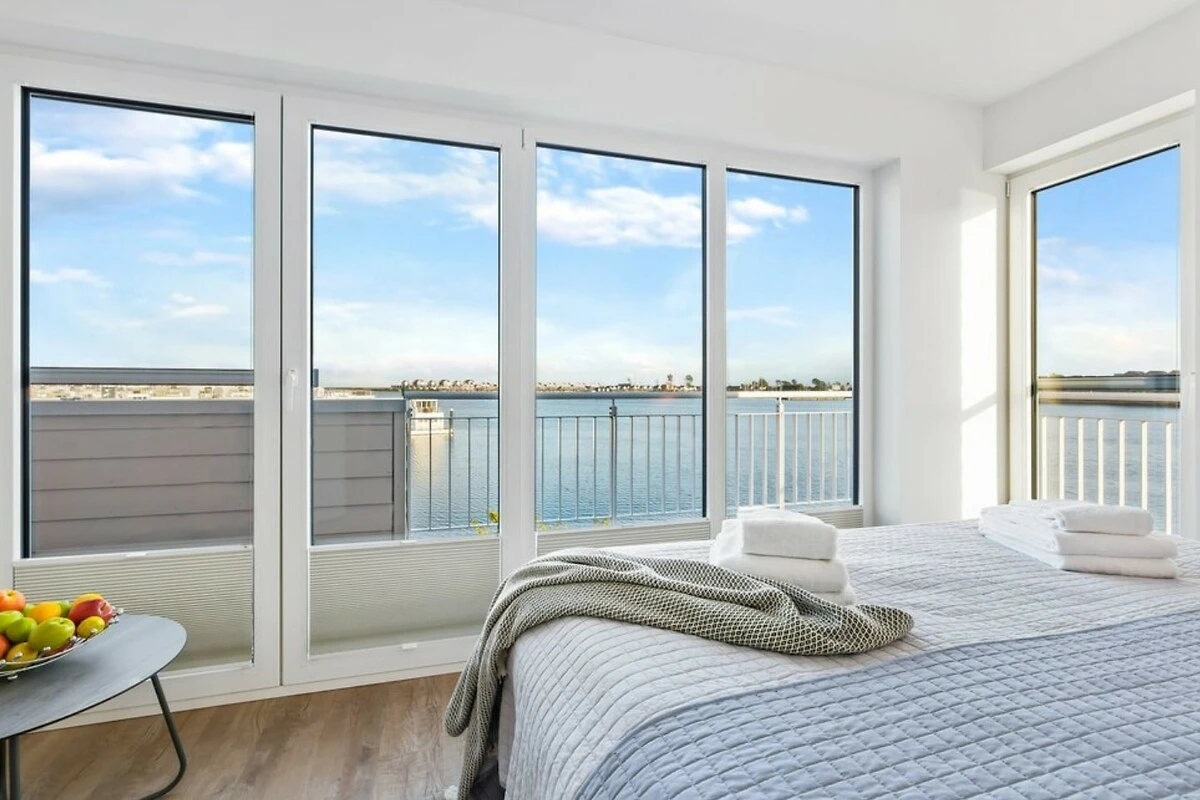 Die Doppelhaushälfte bietet auf 146 m² nicht nur grosszügigen Platz für bis zu sechs Personen, sondern auch eine Ausstattung, die keine Wünsche offenlässt. Der offene Wohn- und Essbereich ist das Herzstück des Hauses: ein gemütlicher Kaminofen für romantische Abende, eine Spielekonsole und LEGO für die Kleinen, ein grosser Smart-TV für gemeinsame Filmnächte – und immer wieder dieser traumhafte Ausblick auf das Hafenbecken.