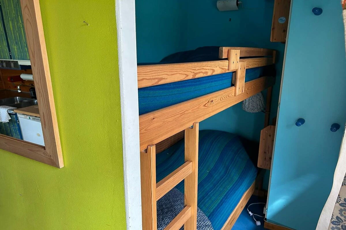 , Küche(Kochherd(elektrisch), Backofen, Mikrowelle, Kühl-/Gefrierkombination, Wasser vom Brunnen), Wohn-/Schlafzimmer(Doppelklappbett ), Schlafzimmer(Doppelbett), Badezimmer(Waschbecken, Dusche, Toilette, Waschmaschine), Badezimmer(TV(schwedische Fernsehsender)), Veranda, Heizung(elektrisch), Garten, Gartenmöbel, Parkplatz, Luft-Luft-Wärmepumpe