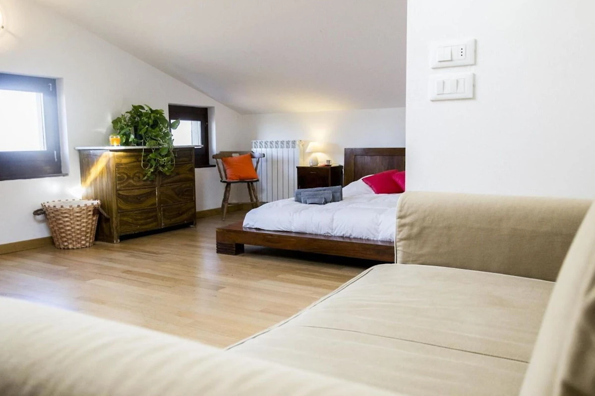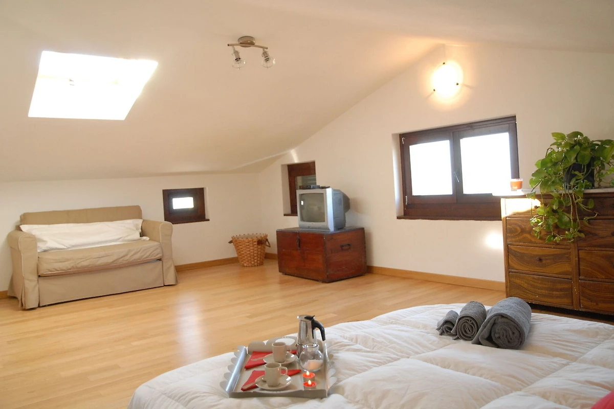 Über eine Innentreppe erreicht man den letzten Raum, einen grossen Dachboden mit einem Doppelbett und einem Doppelschlafsofa (auf Anfrage und gegen Aufpreis). Das Badezimmer ist en-suite und hat eine Dusche.