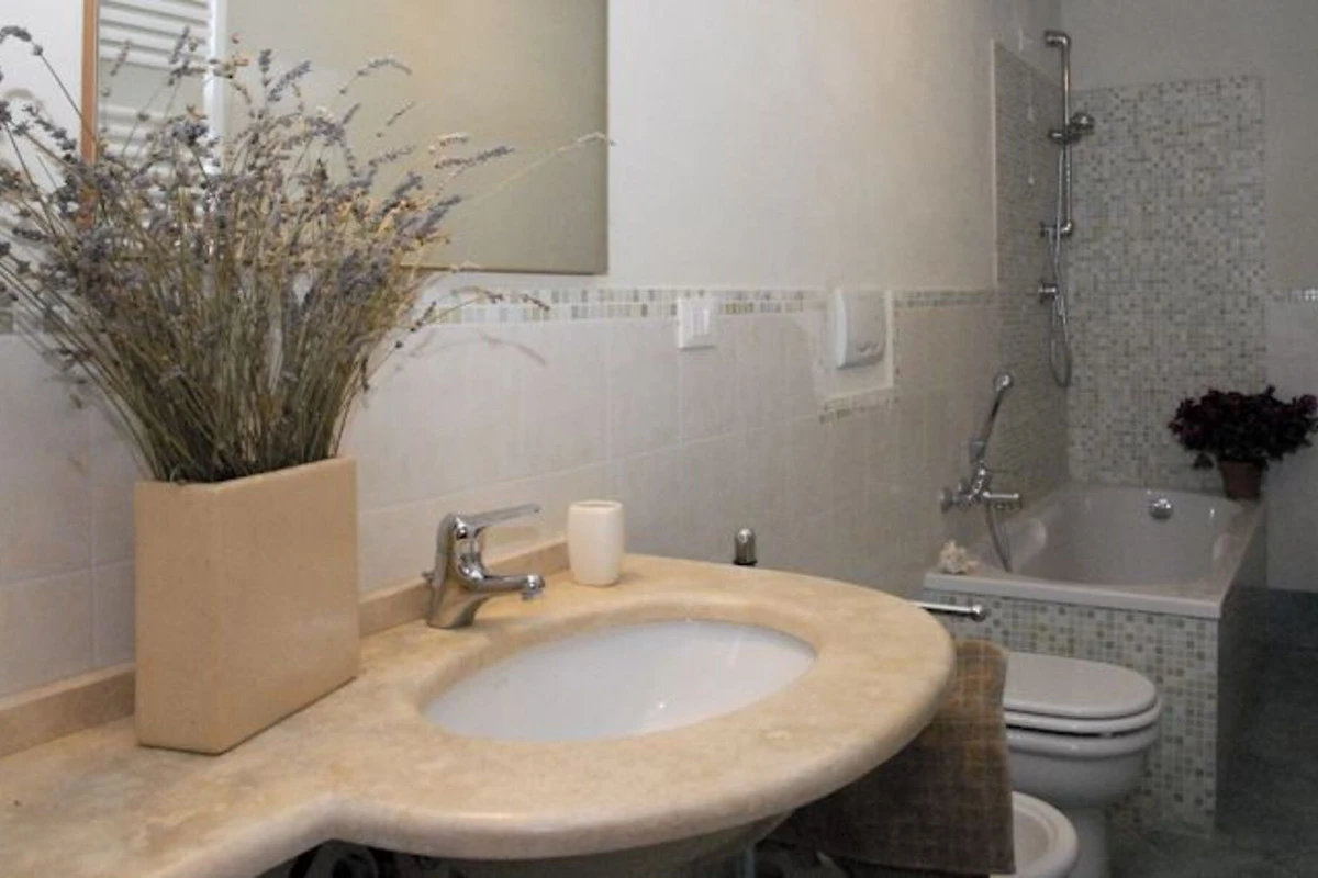 Es gibt ein zusätzliches Badezimmer mit Badewanne.
