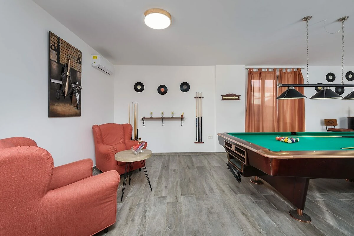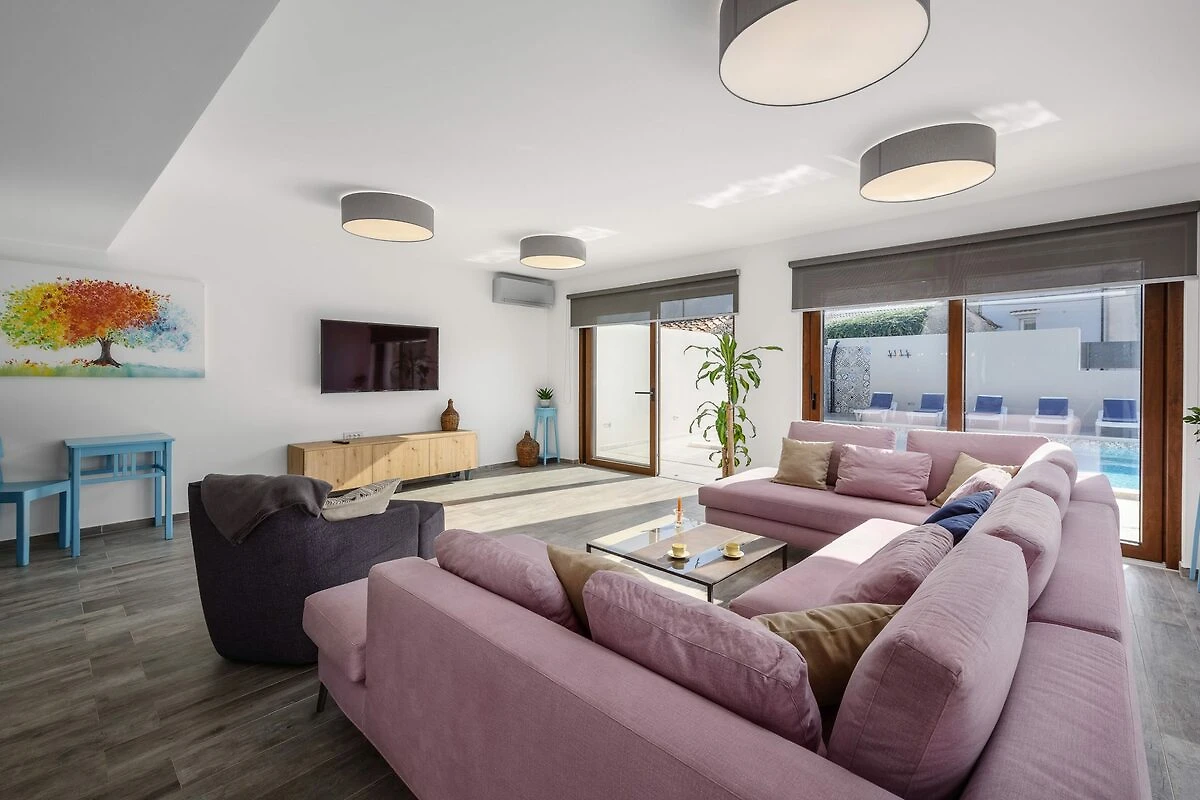 Im Inneren der Villa Valtura befinden sich sechs komfortable Schlafzimmer, jeweils mit eigenem Bad, die jedem Gast Privatsphäre und Komfort bieten. Jedes Schlafzimmer ist mit Klimaanlage, WLAN und Smart-TV ausgestattet. Das Wohnzimmer mit Klimaanlage und TV öffnet sich direkt zur Poolterrasse und schafft so ein fließendes Wohngefühl zwischen Innen und Außen. Eine voll ausgestattete Küche bietet alles, was Sie zum gemeinsamen Zubereiten und Genießen von Mahlzeiten benötigen.