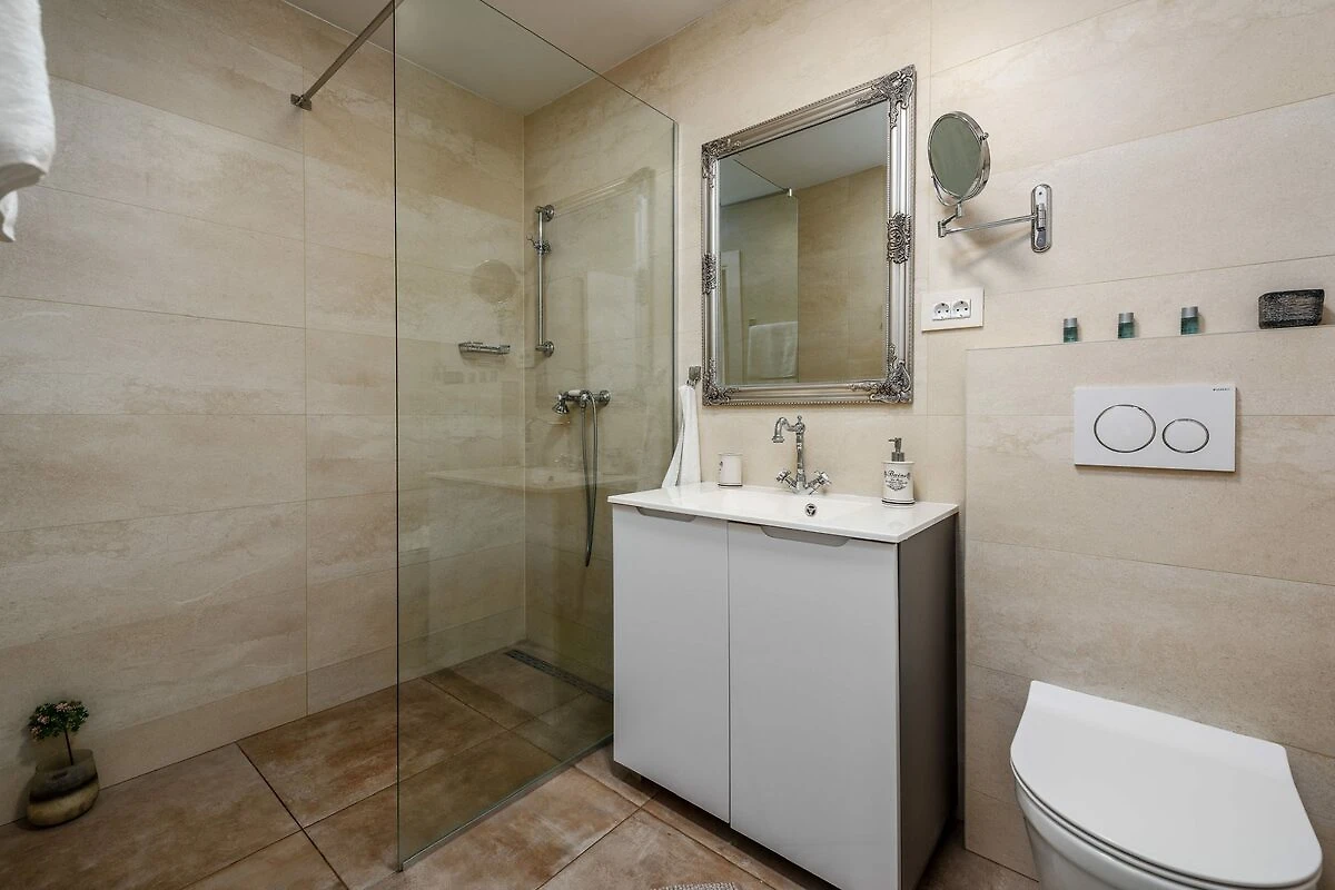 Für Besichtigungen und Freizeitaktivitäten bieten sich die historische Arena Pula (11 km), der Archäologische Park Vižula (12,2 km) und der Adrenalinpark Medulin (13,5 km) an. Das beeindruckende Naturschutzgebiet Kap Kamenjak, ideal zum Schwimmen und Erkunden, liegt 24,1 km von der Villa entfernt.