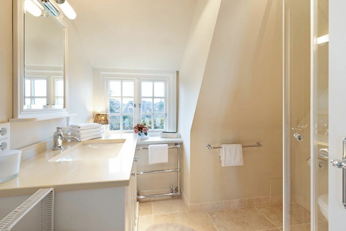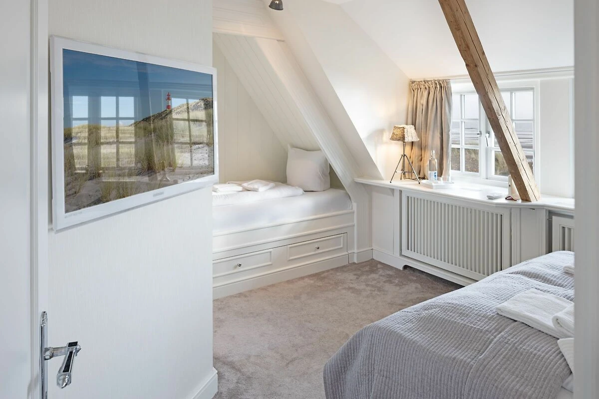 Die Umgebung bietet zudem zahlreiche Möglichkeiten für Sport und Erholung, darunter Radfahren, Golfen und entspannende Spaziergänge entlang der Küste. Einkaufsmöglichkeiten sind etwa 4 Kilometer entfernt, während der nächstgelegene Bahnhof in 11 Kilometern und der Flughafen in 10 Kilometern leicht zu erreichen sind. So ist die Unterkunft sowohl für Familien als auch für Paare ein idealer Rückzugsort, um die Schönheit der nordfriesischen Insel zu genießen und einen erholsamen Urlaub zu verbringen. Sichern Sie sich Ihren Aufenthalt in diesem traumhaften Paradies.