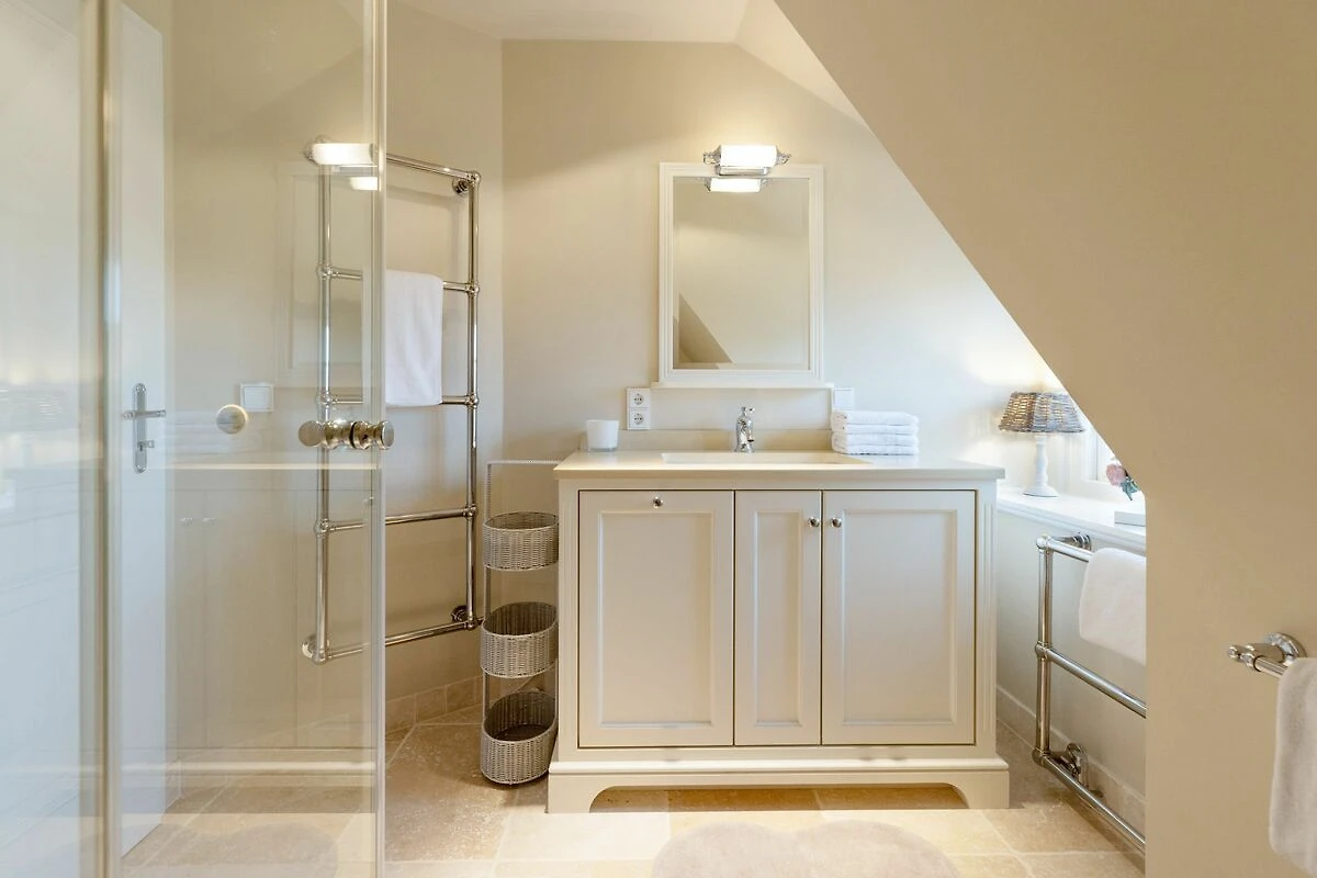 Ihnen stehen drei Schlafzimmer zur Verfügung. Zwei davon befinden sich im 1.OG, mit je einem Doppelbett. Im Master Bedroom findet sich zudem zusätzlich eine Schlafalkove. Bei dem dritten Schlafzimmer handelt es sich um ein Einzelzimmer im Souterrain des Hauses.