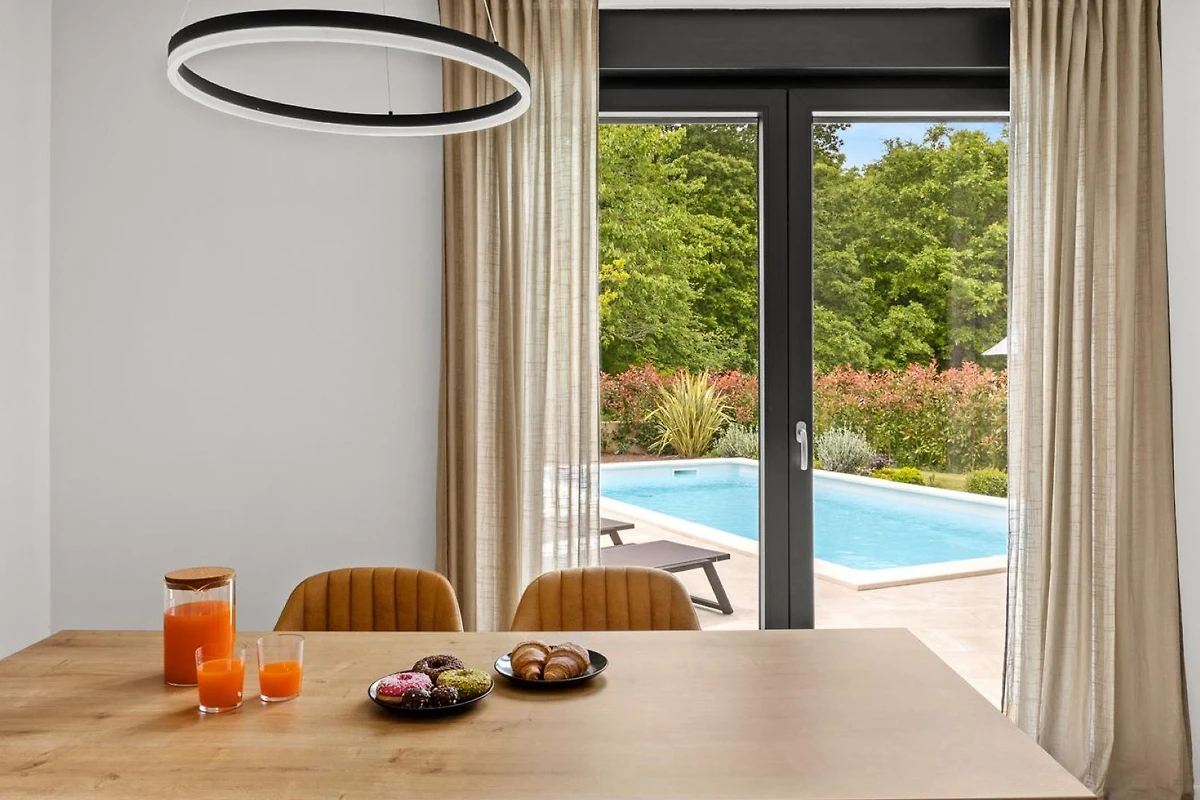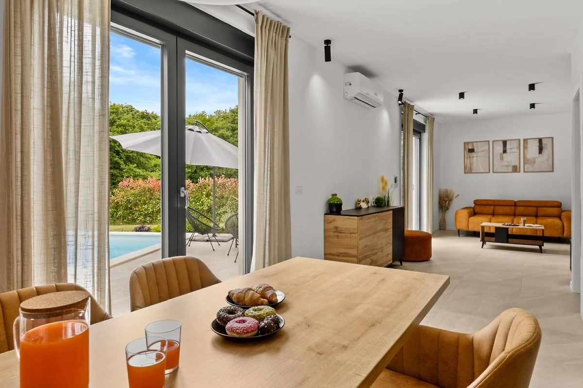 Entdecken Sie Villa Minka, einen charmanten ländlichen Rückzugsort, der ideal für Familien und Paare ist, die einen friedlichen Urlaub in Prodol suchen. Diese geräumige 110m² Villa bietet eine entzückende Mischung aus Komfort und Privatsphäre, gelegen auf einem grosszügigen 290m² Grundstück mit atemberaubenden Garten- und Poolausblicken.