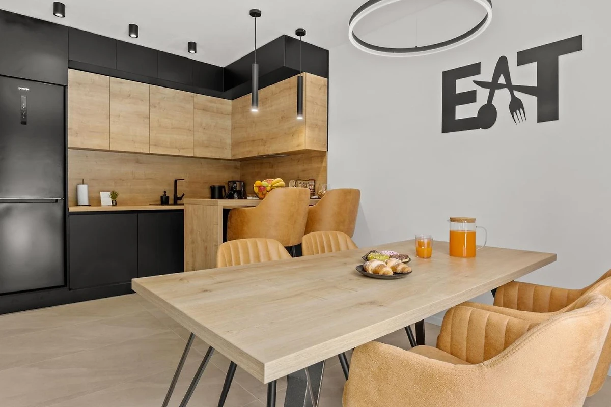 Das Herz des Hauses ist die moderne amerikanische Küche, vollständig ausgestattet mit hochwertigen Geräten, einschliesslich Induktionskochfeld, Kühlschrank, Gefrierschrank, Backofen, Geschirrspüler, Kaffeemaschine und Toaster. Die Gäste werden das umfassende Küchengeschirr und die Teller zu schätzen wissen.