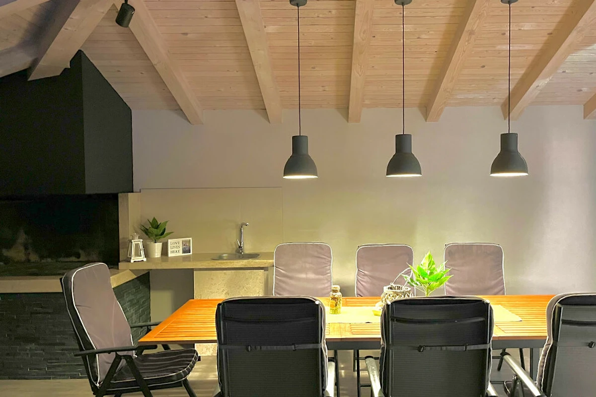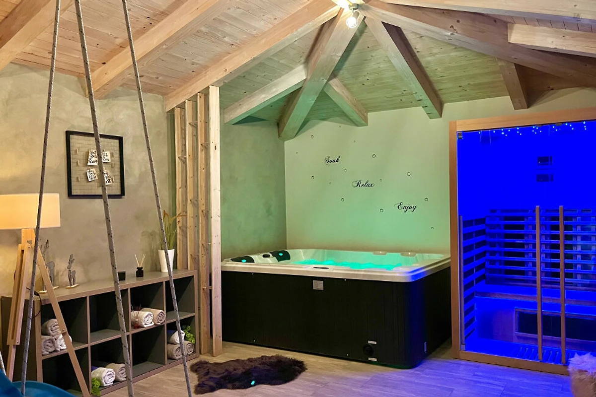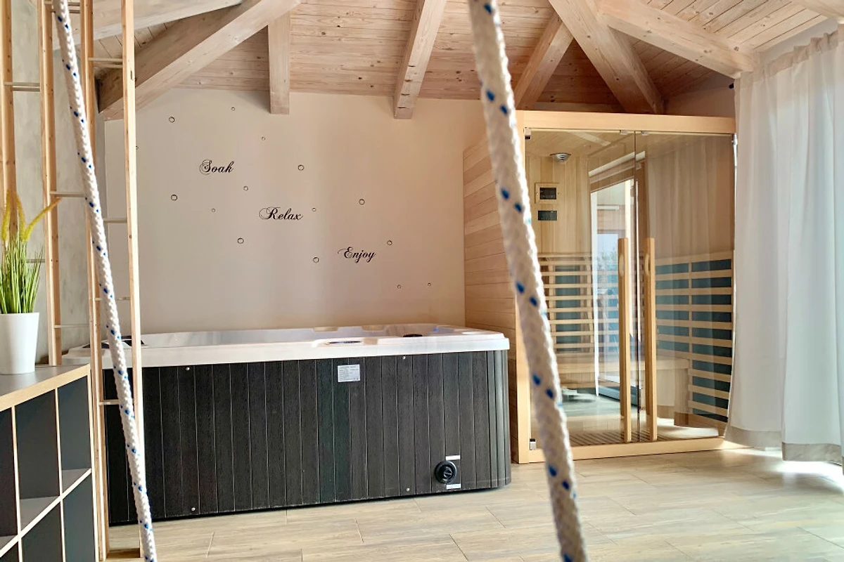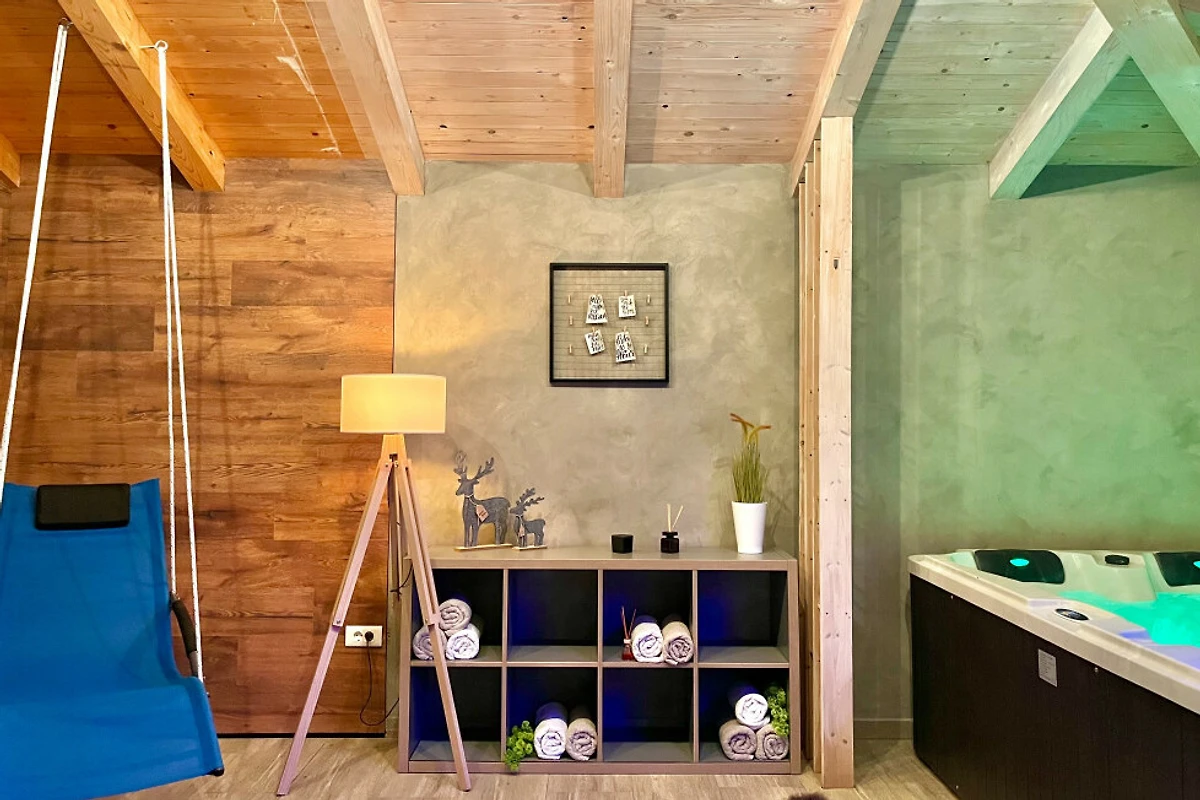 Naturliebhaber werden den privaten 5x7,5 Meter grossen Swimmingpool lieben, der von einem wunderschön gestalteten 800 Quadratmeter grossen Garten umgeben ist. Der Aussenbereich verfügt über eine Terrasse, Gartenmöbel und einen Grill, ideal für Mahlzeiten im Freien. Entspannen Sie sich in der Sauna oder gönnen Sie sich nach einem Tag der Erkundung die Wellnessfazilitäten.