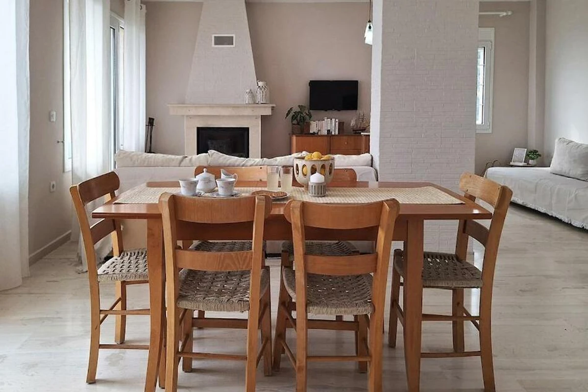 Willkommen im Ferienhaus Silver Moon auf Kreta – Ihr perfektes Zuhause für entspannte Urlaubstage mit bis zu sechs Gästen. Auf 130 m² erwarten Sie drei großzügige Schlafzimmer und drei Badezimmer. Die voll ausgestattete Küche mit Geschirrspüler, Mikrowelle, Wasserkocher und Kaffeemaschine lädt zum gemeinsamen Kochen ein. Im offenen Wohnbereich sorgt ein Kamin für behagliche Abende, während die Klimaanlage an heißen Tagen angenehme Kühle spendet. Im Garten finden die Gäste einen Grill für gesellige Mahlzeiten.