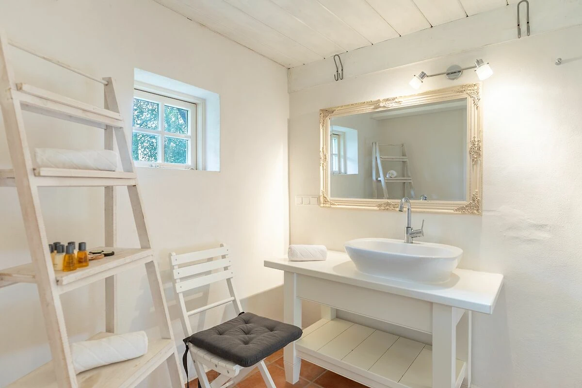 Wunderschöner parkähnlicher Garten, "Vierbeiner fest", da eingezäunt. Leider reger Bauernhofbetrieb nebenan, bis 22.30 Uhr wurde an mehreren Tagen Silage gefahren. Im Badezimmer permanenter Geruch von der Hauskläranlage (Geruchsverschluß defekt?).