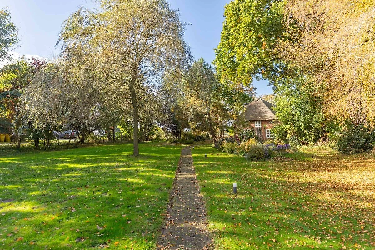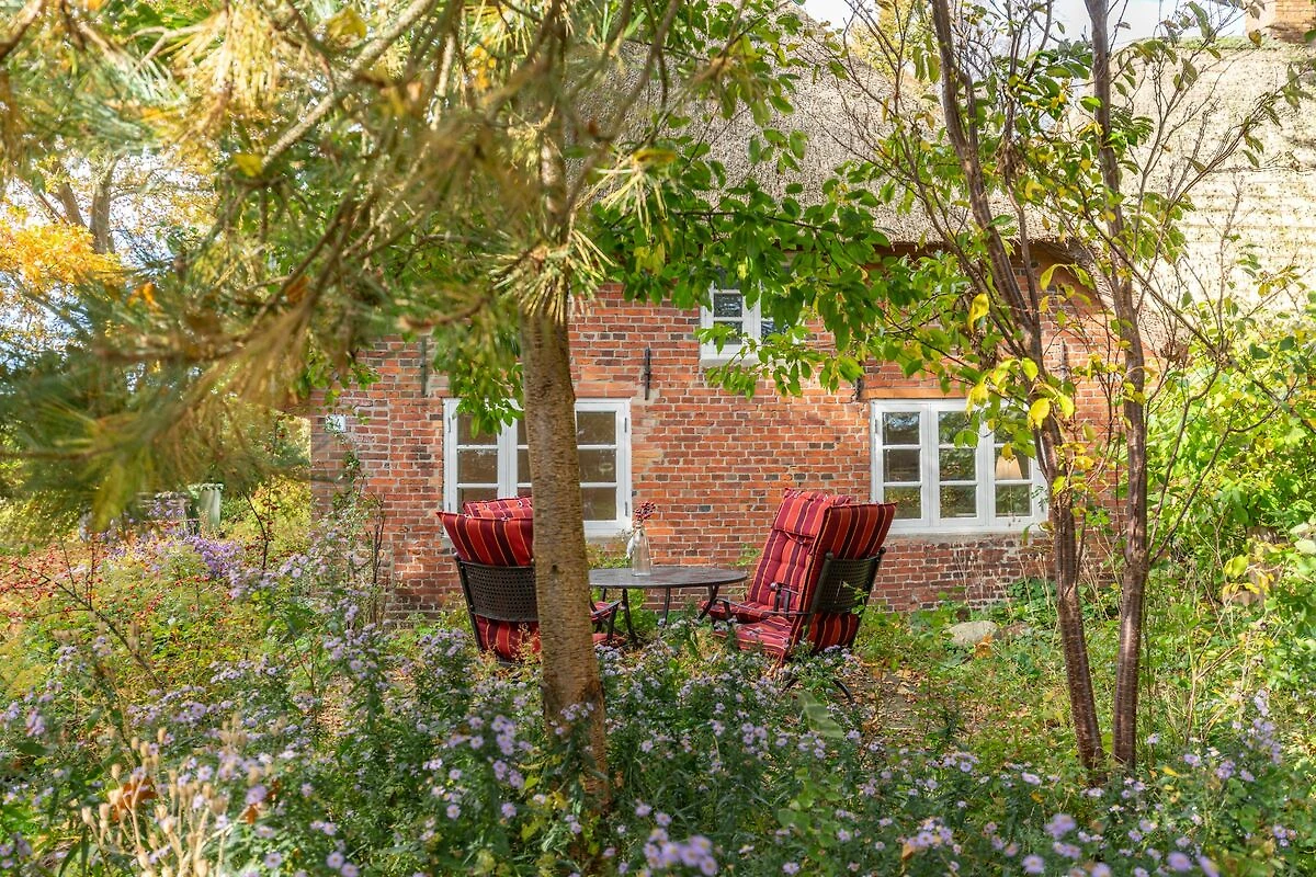 Idyllische Atmosphäre im romantischen Reetdachhaus mit Bauerngarten