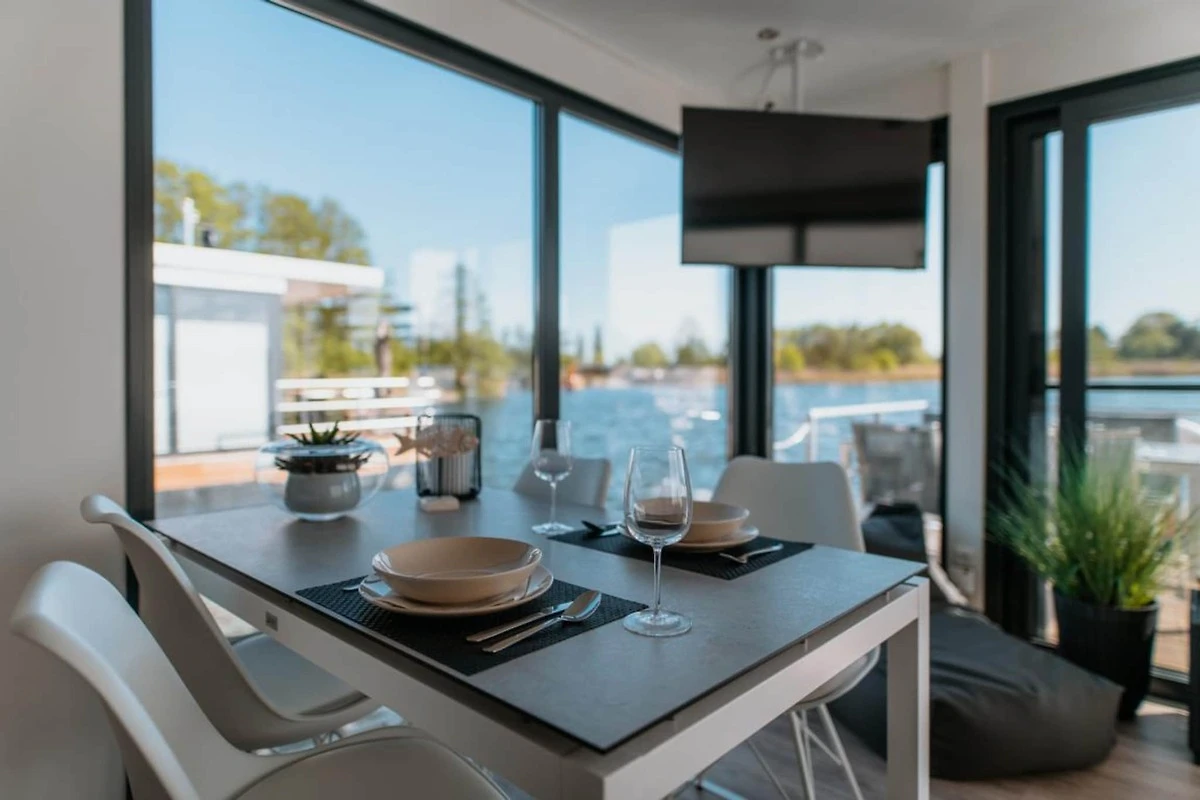Gönnen Sie sich einen luxuriösen und erholsamen Urlaub an Bord eines Hausboots, das sanft am Prerauer Stich und der Havel nördlich von Berlin vor Anker liegt. Diese einzigartige Unterkunft verbindet einen friedlichen Blick auf das Wasser mit dem Charme des brandenburgischen Natur- und Kulturerbes. Im Haus finden Sie alles für einen sorgenfreien Aufenthalt – WLAN, Bettwäsche, Energiekosten, Reinigung und Parkplatz sind inklusive, sodass Sie sich nur noch um Entspannung kümmern müssen.